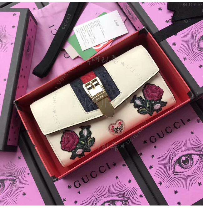[스페셜오더]GUCCI-476084 8406 구찌 Gucci Sylvie 화이트 가죽 꽃 자수 장지갑