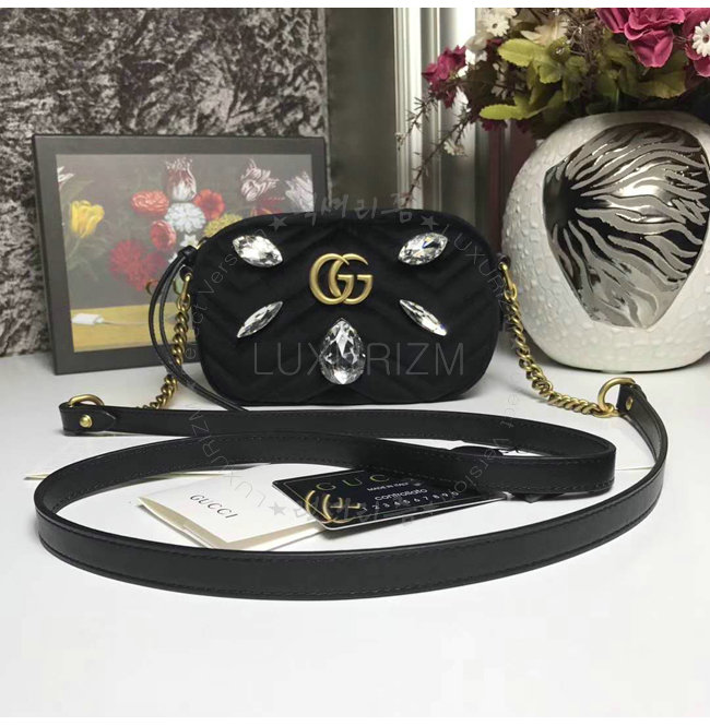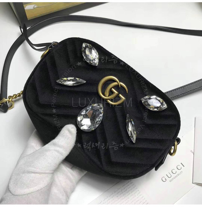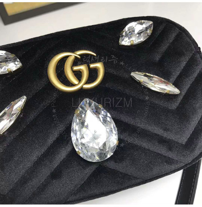 [스페셜오더]GUCCI-448065 1081 구찌 GG Marmont 블랙 벨벳 크리스탈 트리밍 미니 백