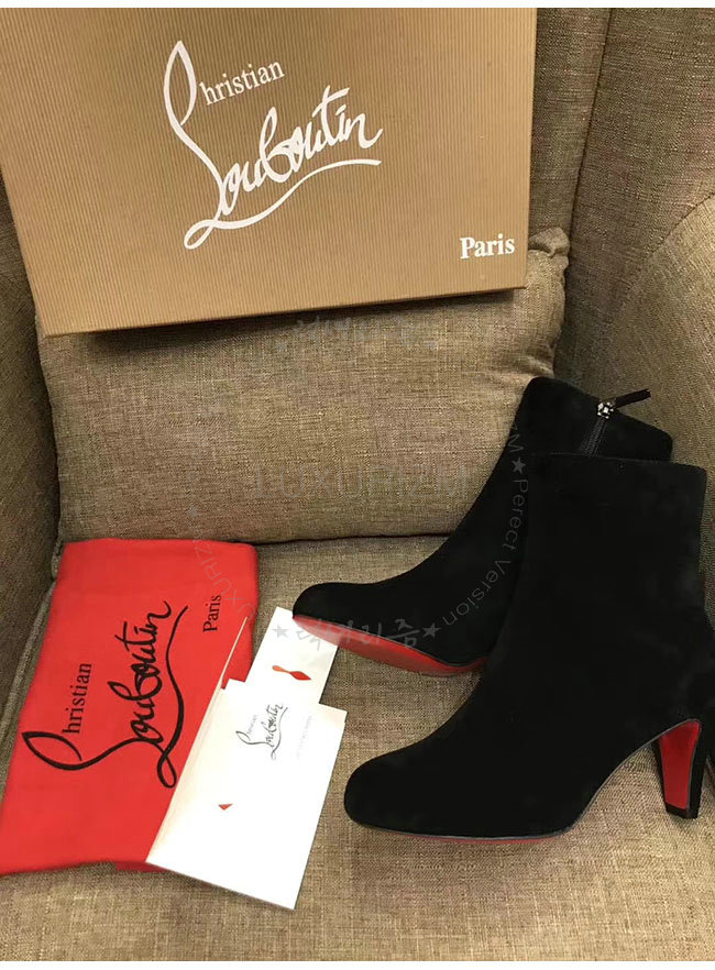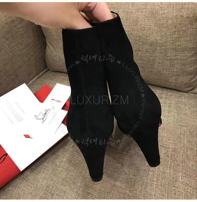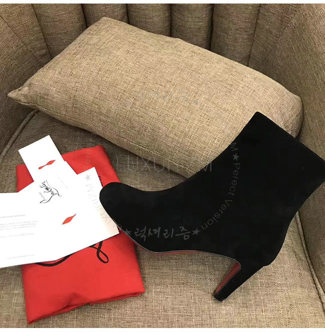 [스페셜오더]CHRISTIAN LOUBOUTIN-크리스찬루부탱 블랙 스웨이드 카프스킨 앵클 부츠 여성용