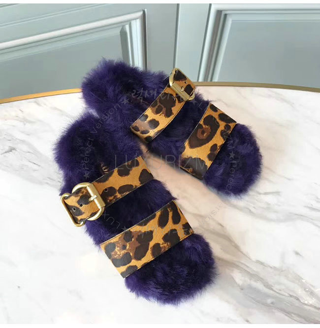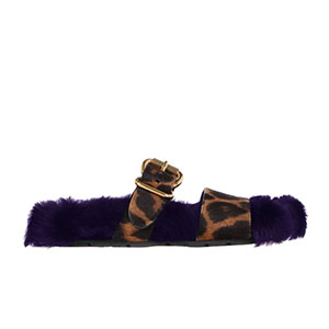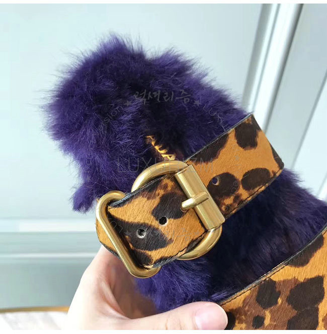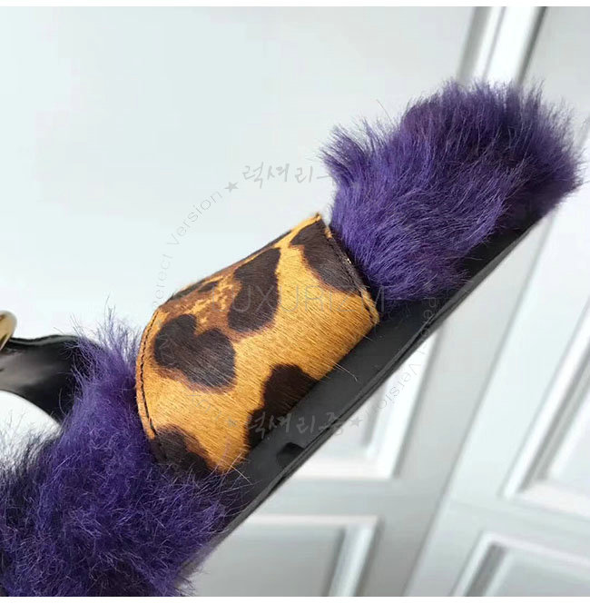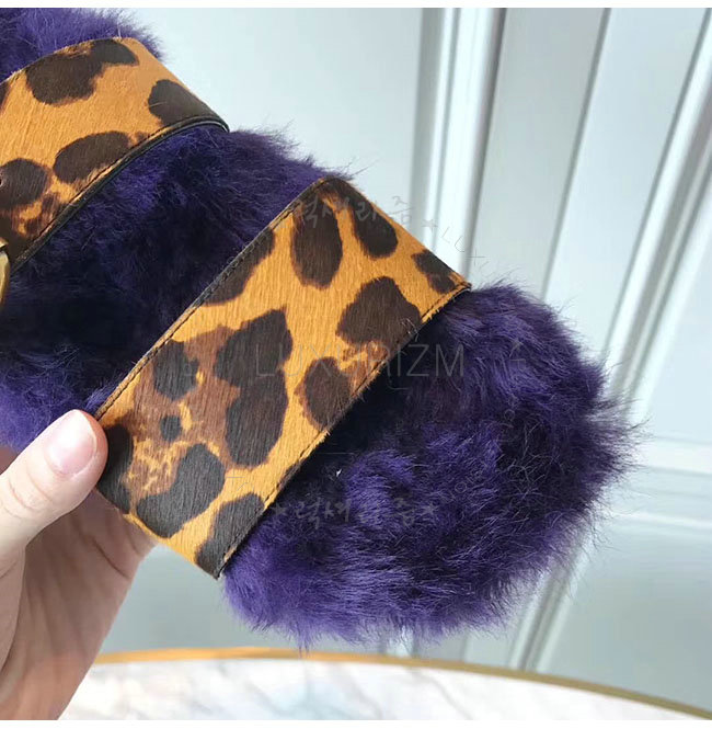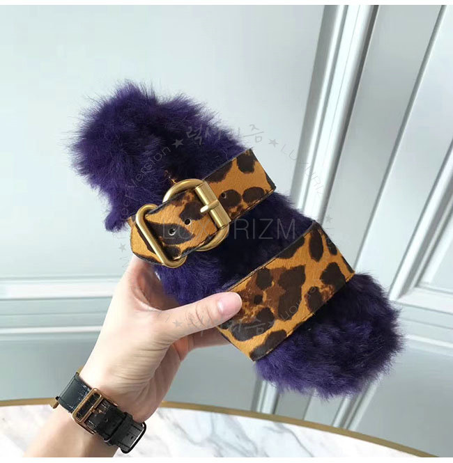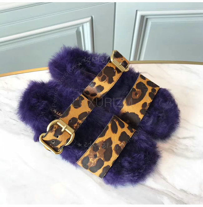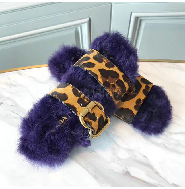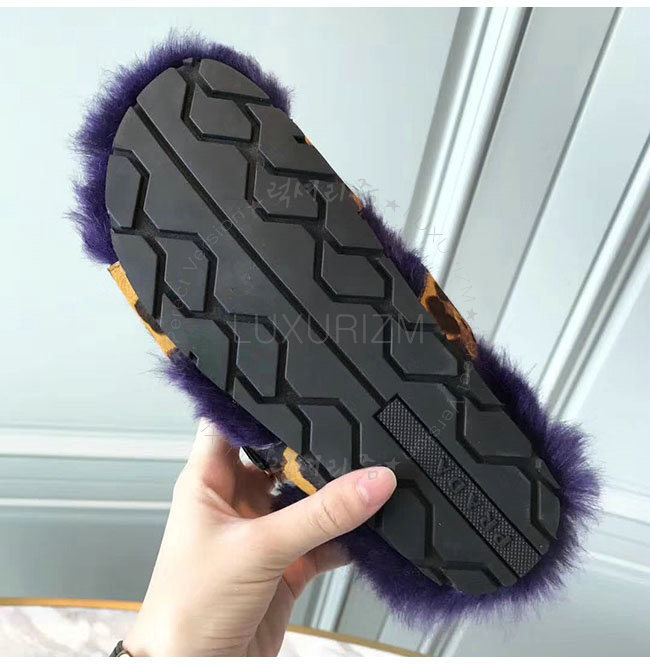 PRADA-1Q503M 프라다 호피무늬 시어링 벨벳 퍼플 레오파드 스트랩 슬리퍼 여성용