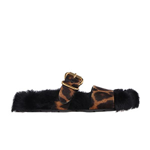 PRADA-1Q503M 프라다 호피무늬 시어링 벨벳 블랙 레오파드 스트랩 슬리퍼 여성용
