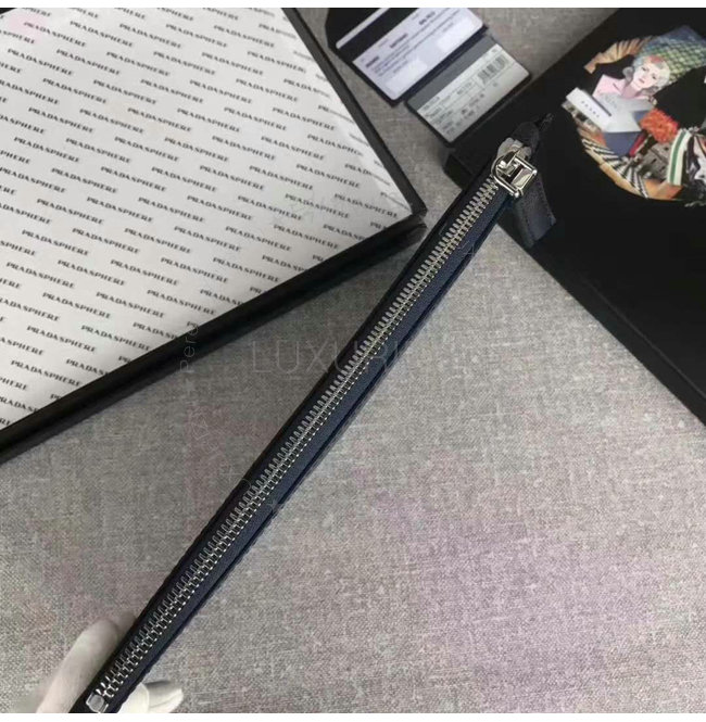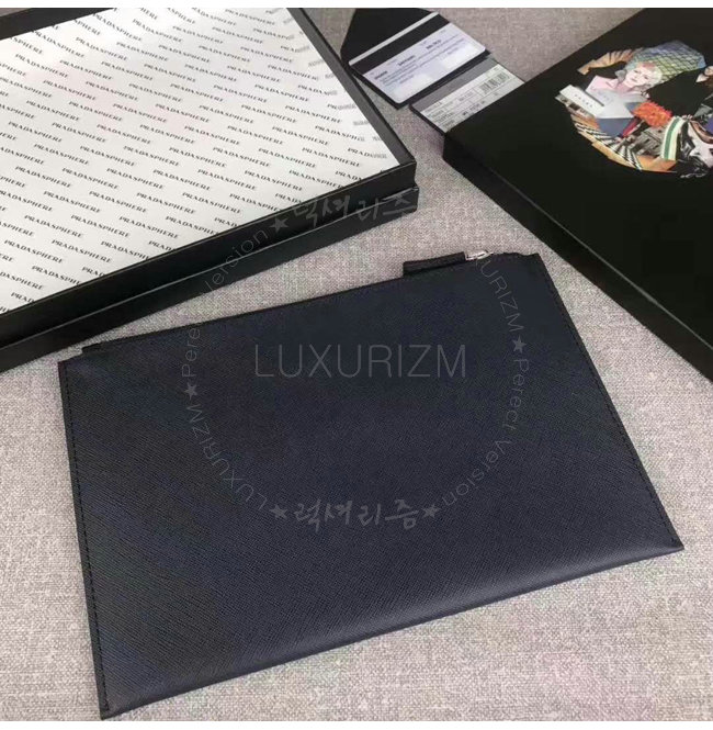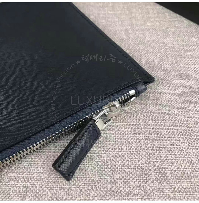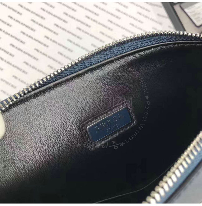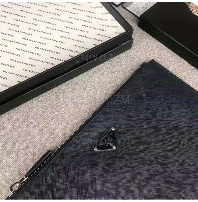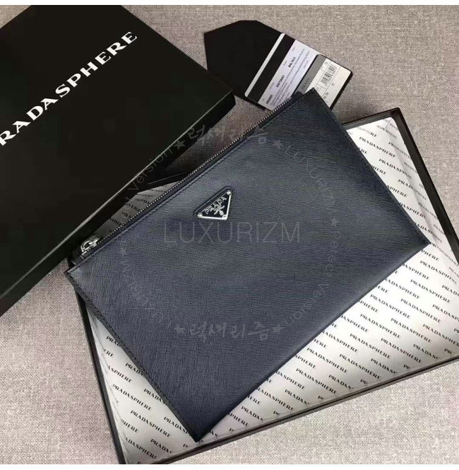 [스페셜오더]PRADA-2NG005 프라다 사피아노 가죽 트라이앵글 로고 트래블 키트 네이비 클러치