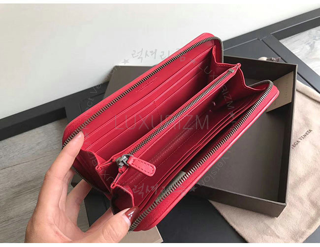 [스페셜오더]BOTTEGA VENETA-114076 보테가 베네타 레드 인트레치아토 나파 짚 어라운드 지갑