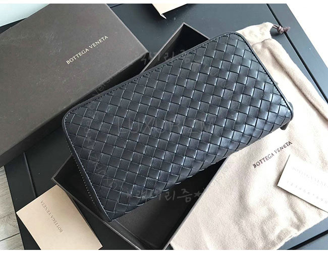 [스페셜오더]BOTTEGA VENETA-114076 보테가 베네타 블랙 인트레치아토 나파 짚 어라운드 지갑