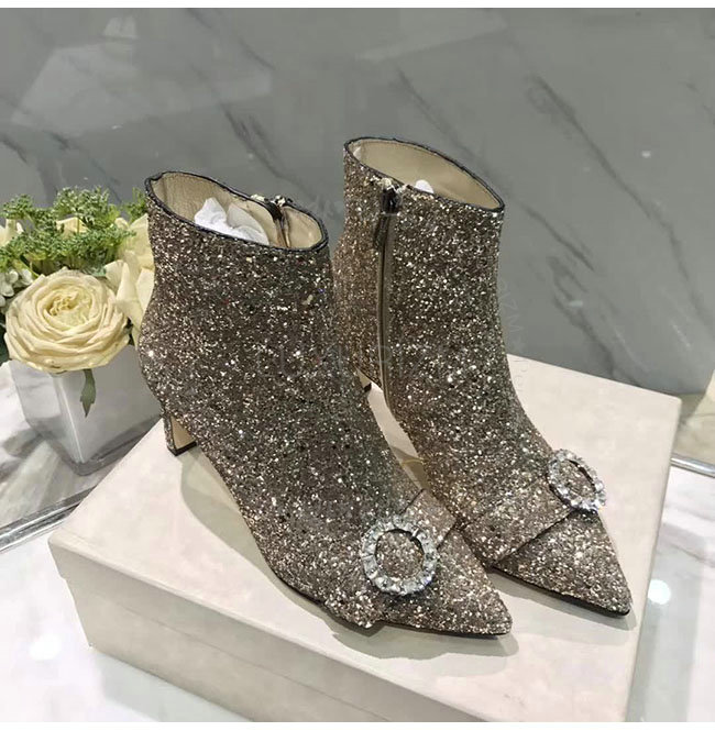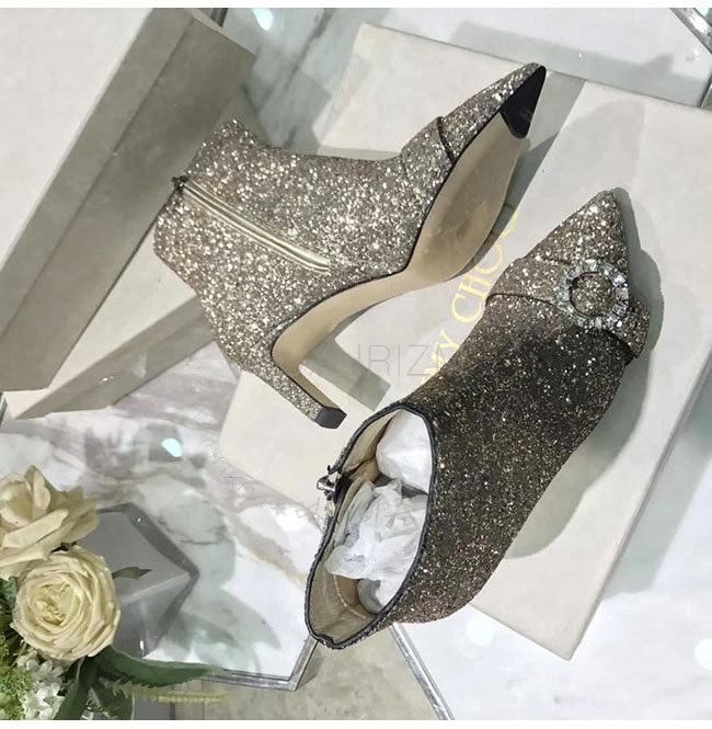 JIMMY CHOO-HANOVER 지미추 해너버 실버 글리터 패브릭 부츠 여성용