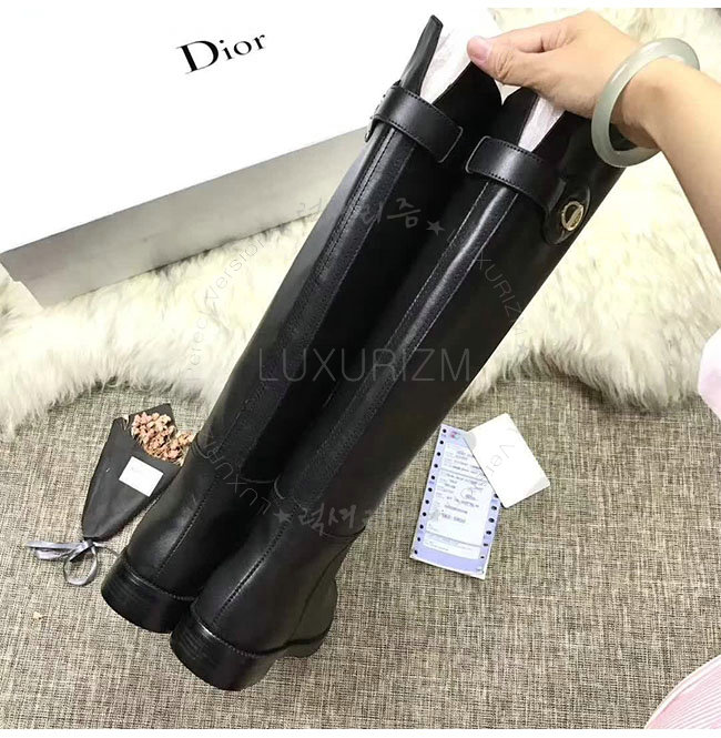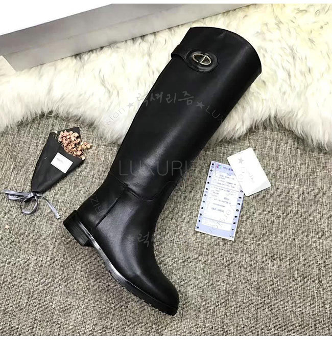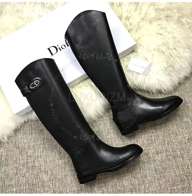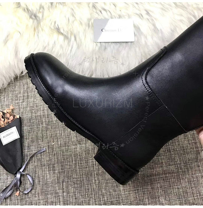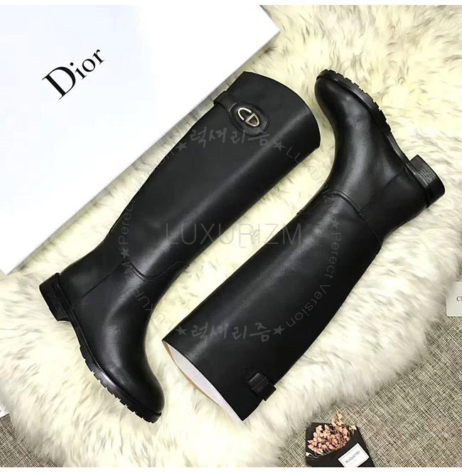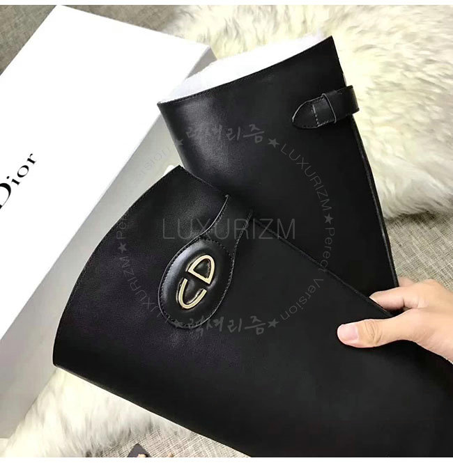 DIOR-KCH365 디올 블랙 카프스킨 골드 타운 CD 이니셜 부츠 여성용