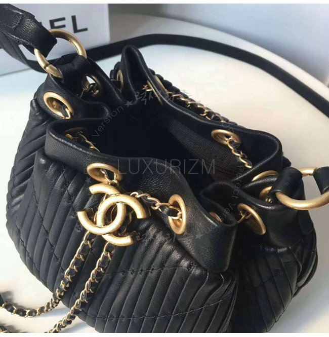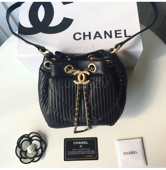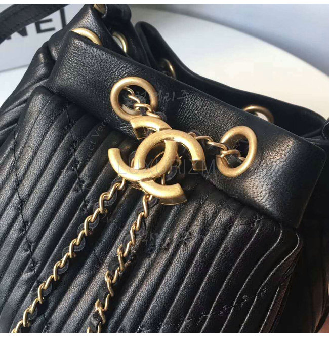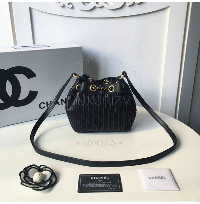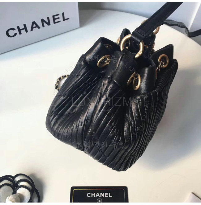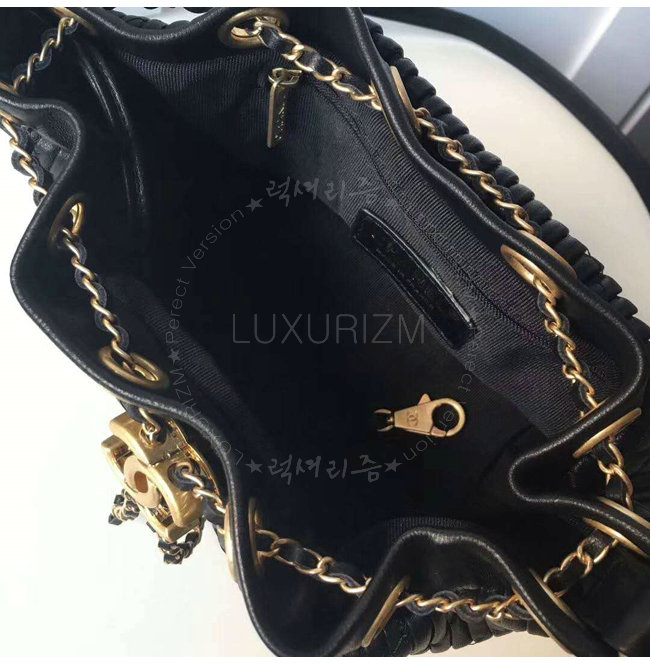 [스페셜오더]CHANEL-A91757 샤넬 플리츠 크럼플드 카프스킨 블랙 드로스트링 백