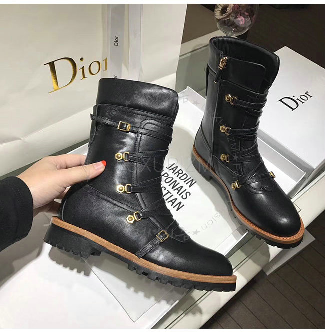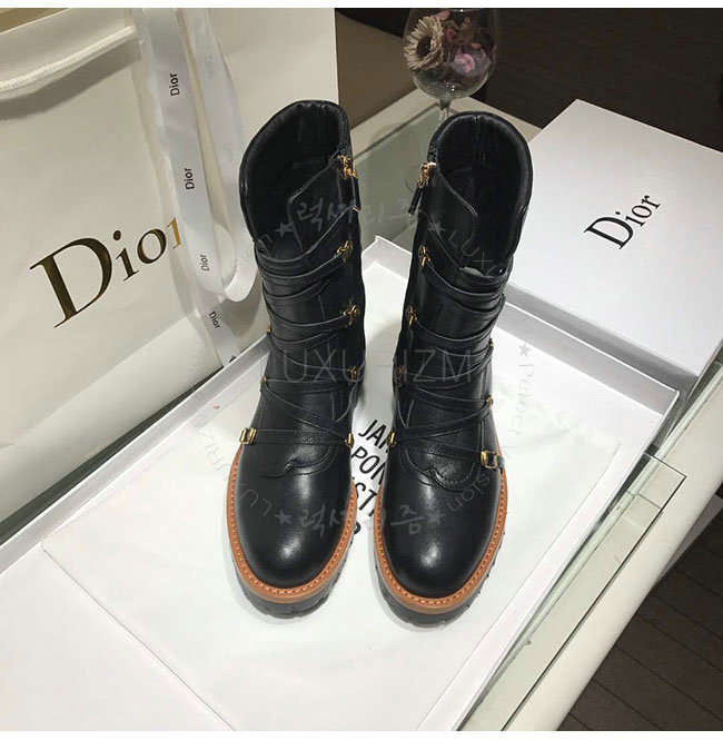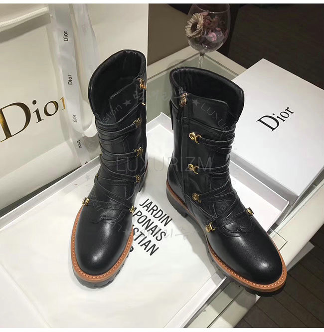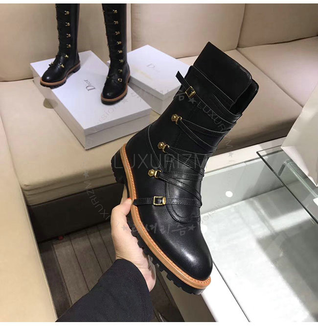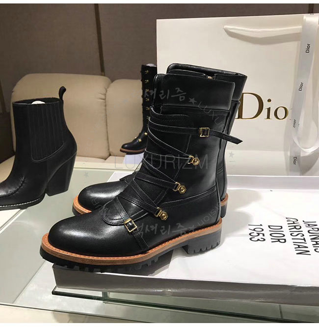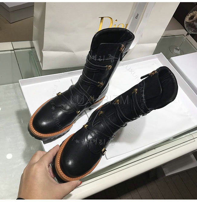 [스페셜오더]DIOR-KDI428 디올 블랙 송아지 가죽 레이스업 앵클 부츠 여성용