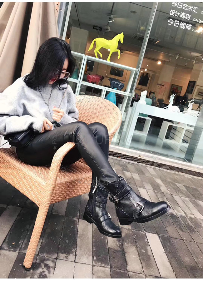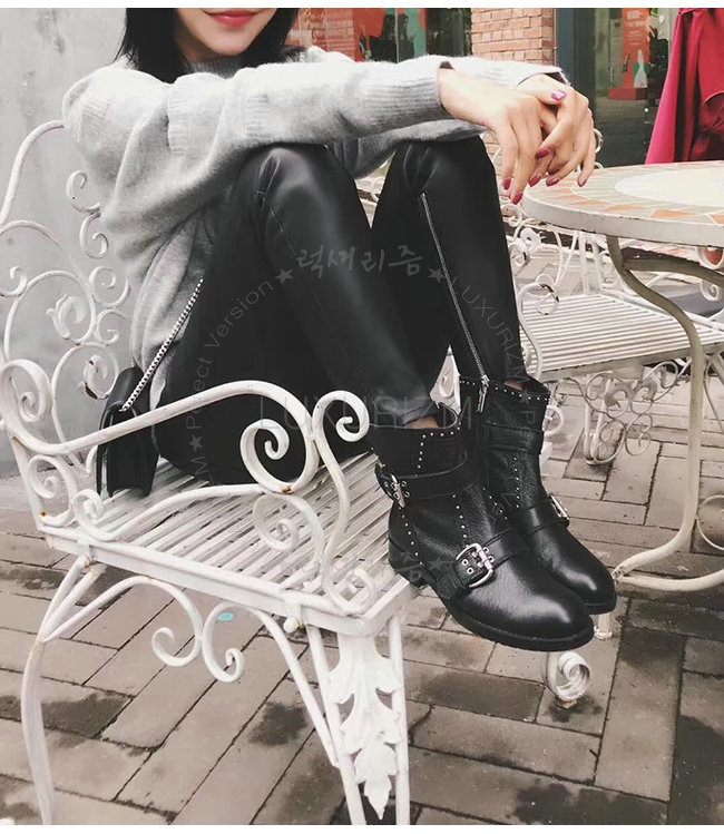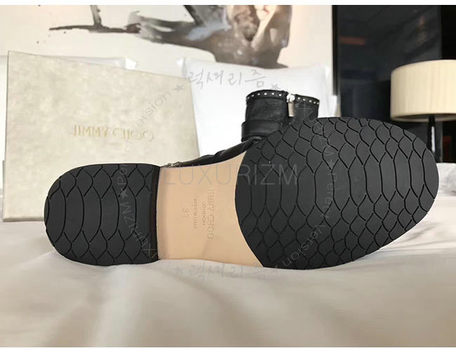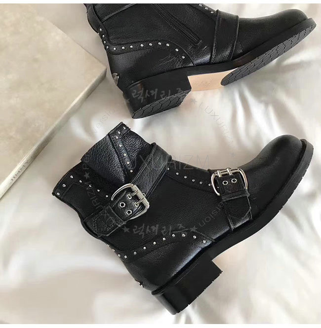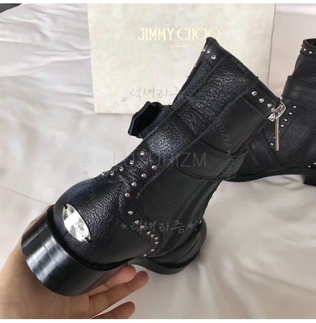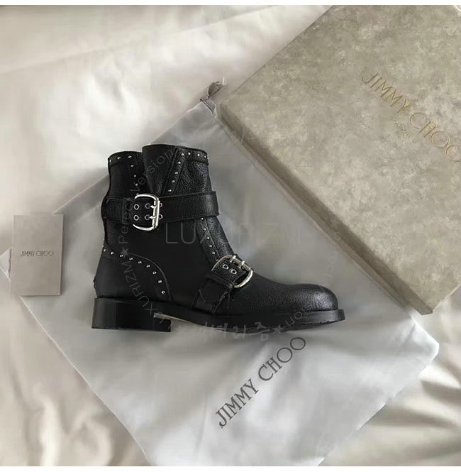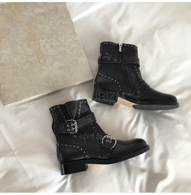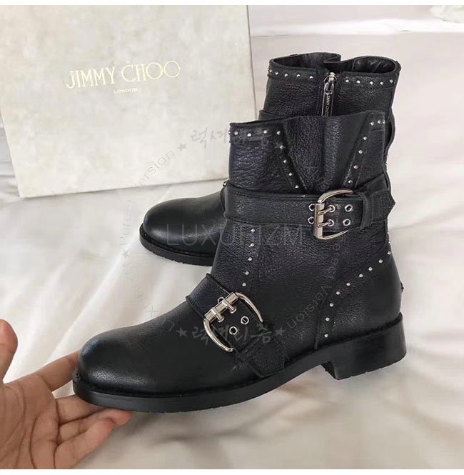 JIMMY CHOO-지미추 BLYSS 블랙 송아지가죽 블리스 바이커 부츠 여성용
