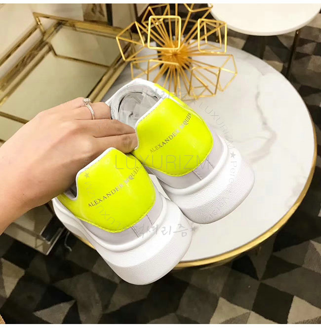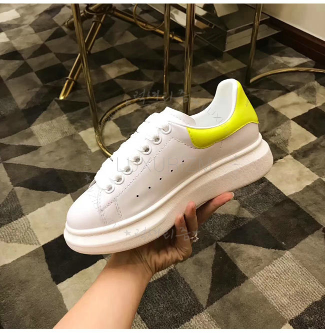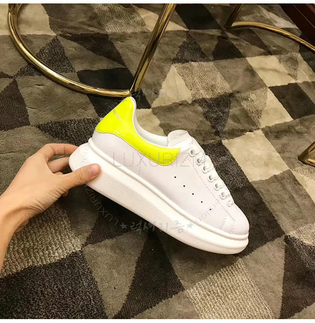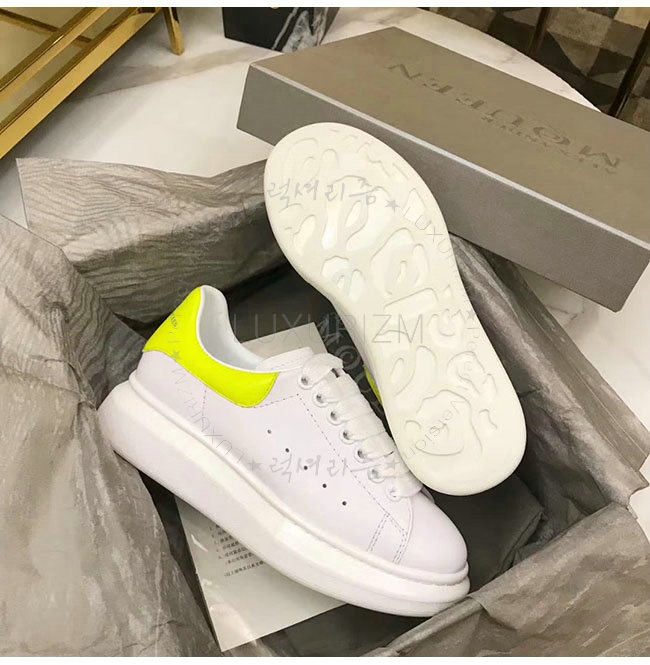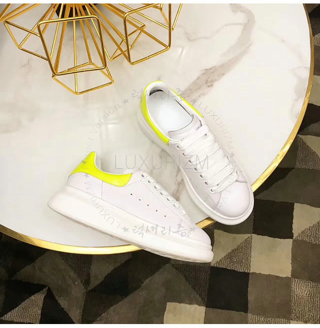 ALEXANDER MCQUEEN-462214 알렉산더 맥퀸 오버솔 화이트 옐로 가죽 스니커즈 남녀공용