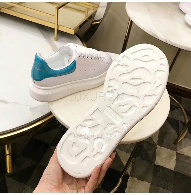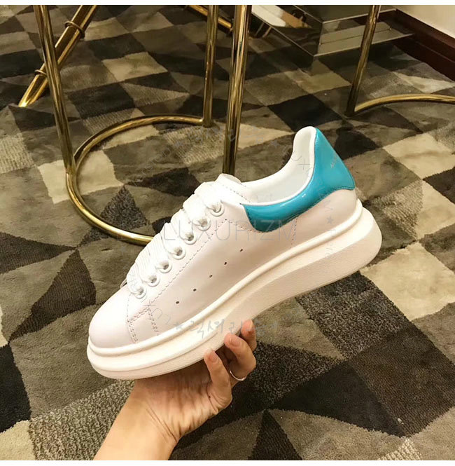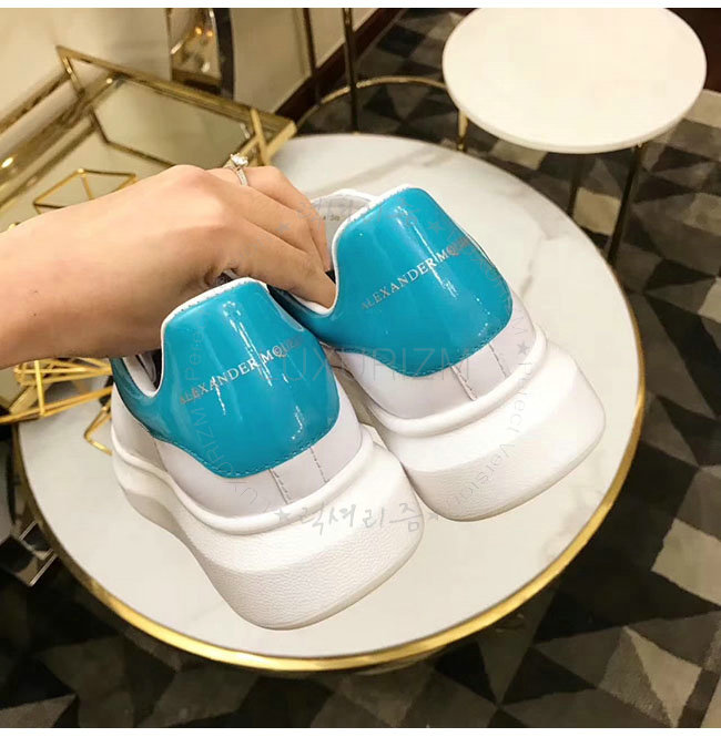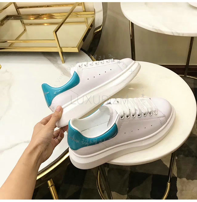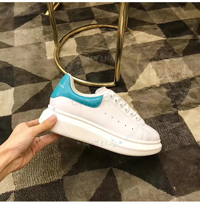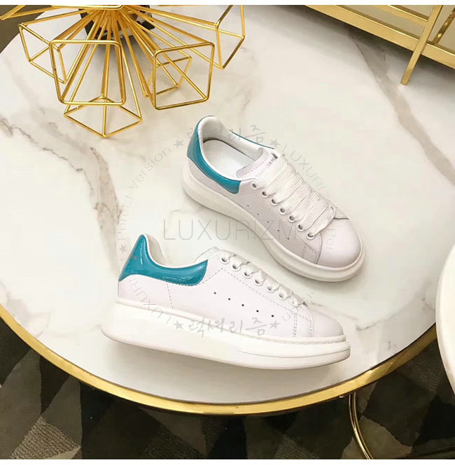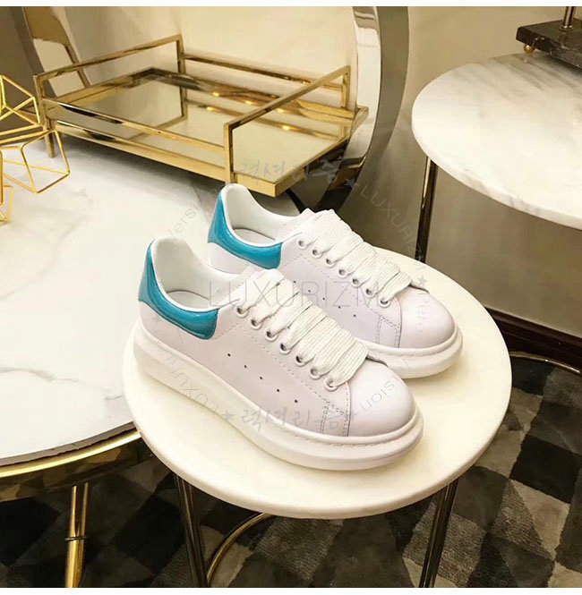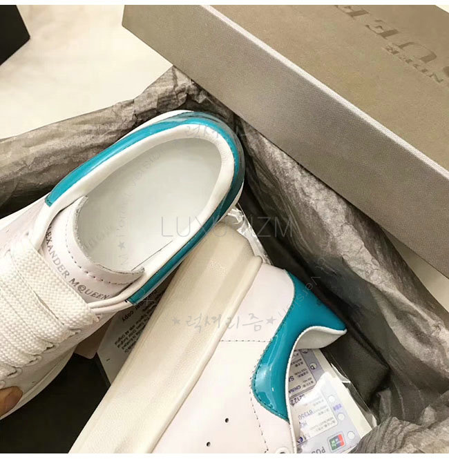 ALEXANDER MCQUEEN-462214 알렉산더 맥퀸 오버솔 화이트 연블루 가죽 스니커즈 남녀공용