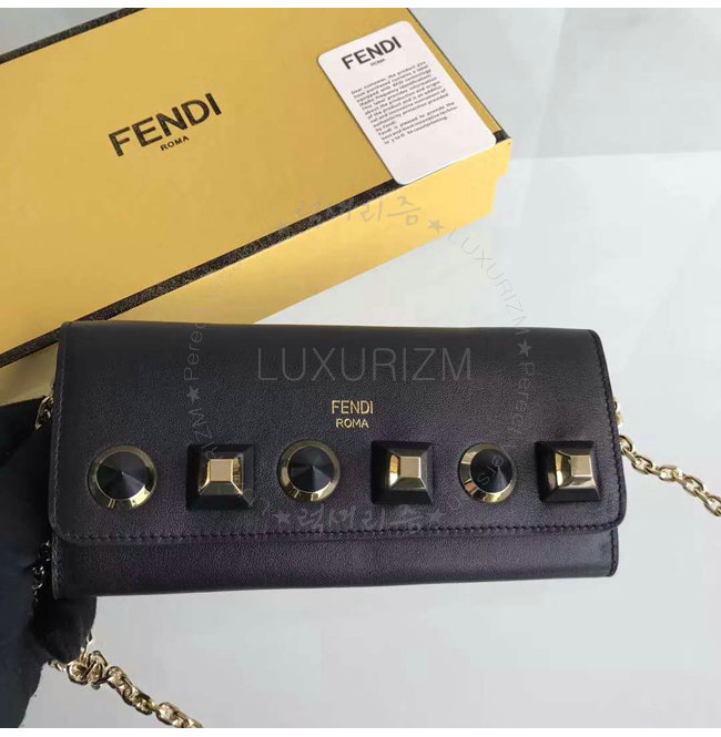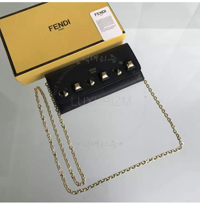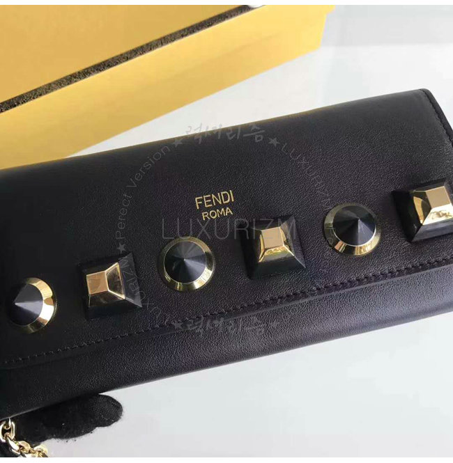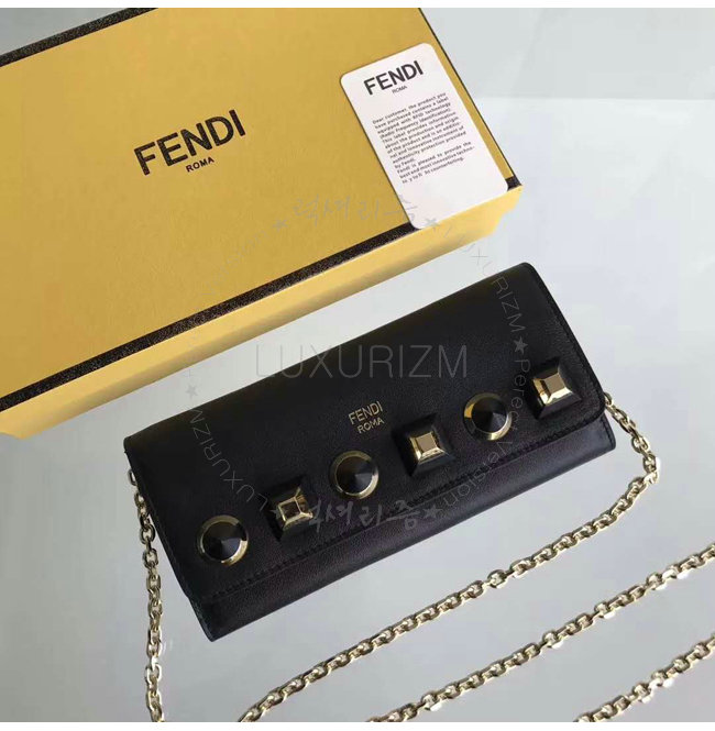 [스페셜오더]FENDI-8M0365 펜디 송아지 가죽 스터드 장식 블랙 체인 장지갑