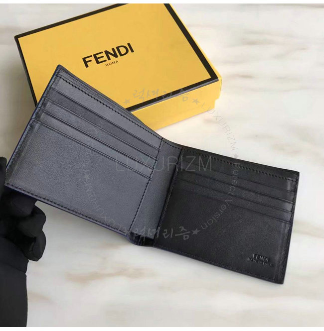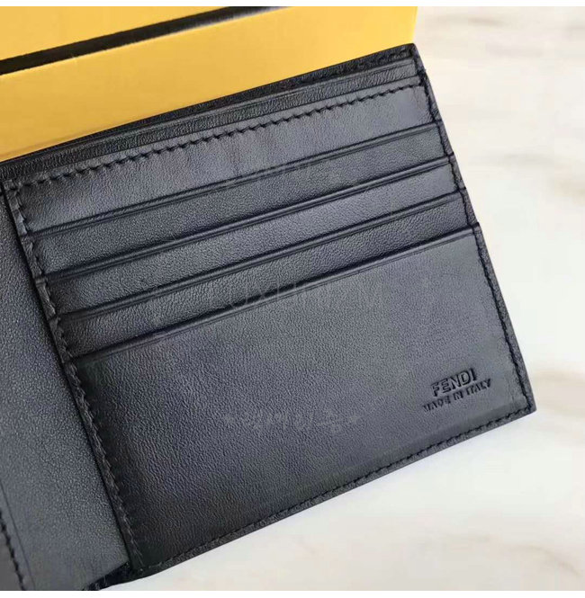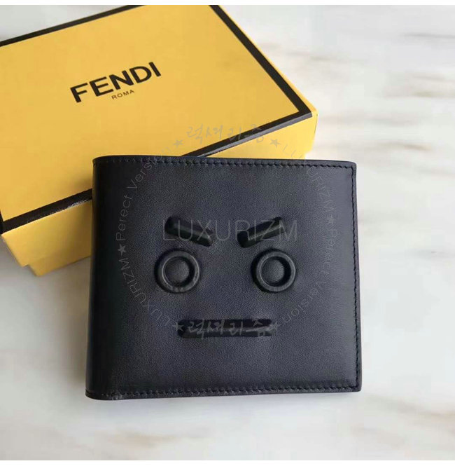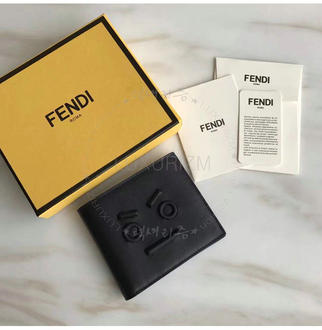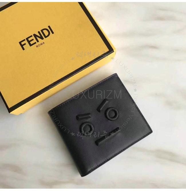 [스페셜오더]FENDI-7M0169 펜디 송아지 가죽 펜디 페이스 모티브 블랙 반지갑