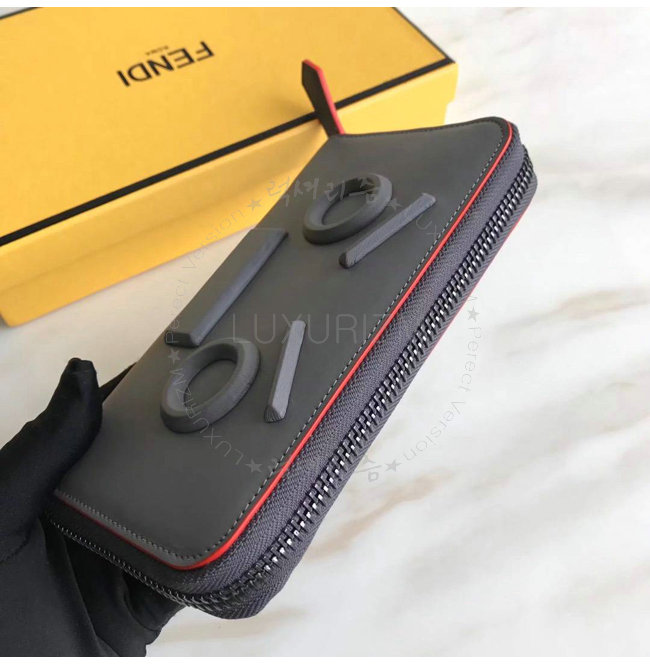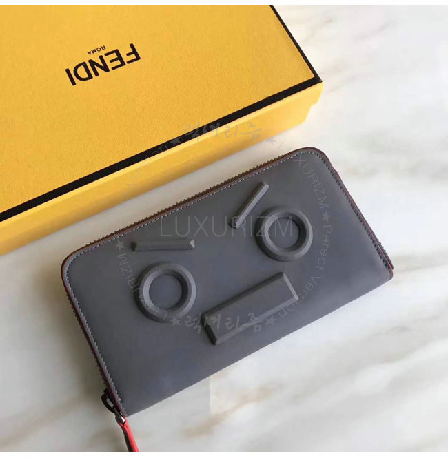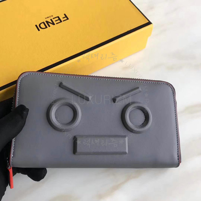 [스페셜오더]FENDI-7M0210 펜디 송아지 가죽 펜디 페이스 모티브 그레이 지퍼 어라운드 월릿
