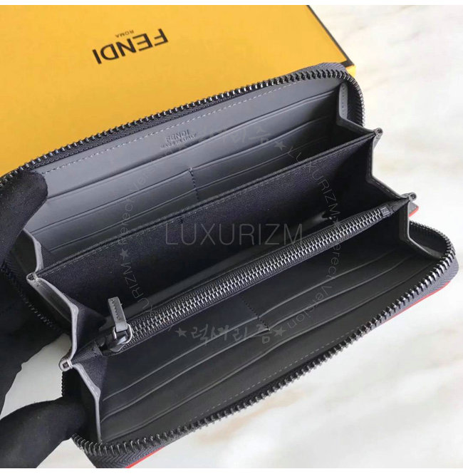 [스페셜오더]FENDI-7M0210 펜디 송아지 가죽 펜디 페이스 모티브 블랙 지퍼 어라운드 월릿