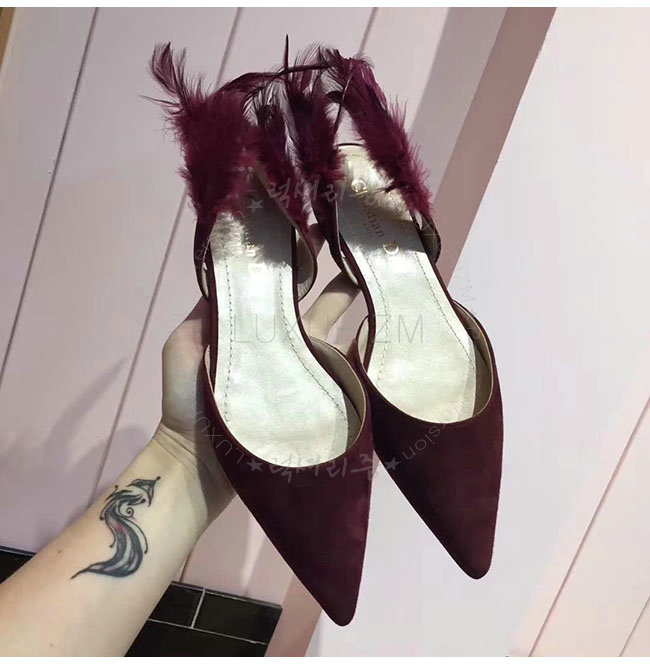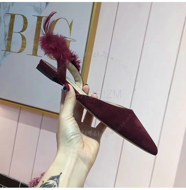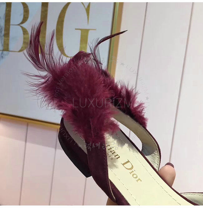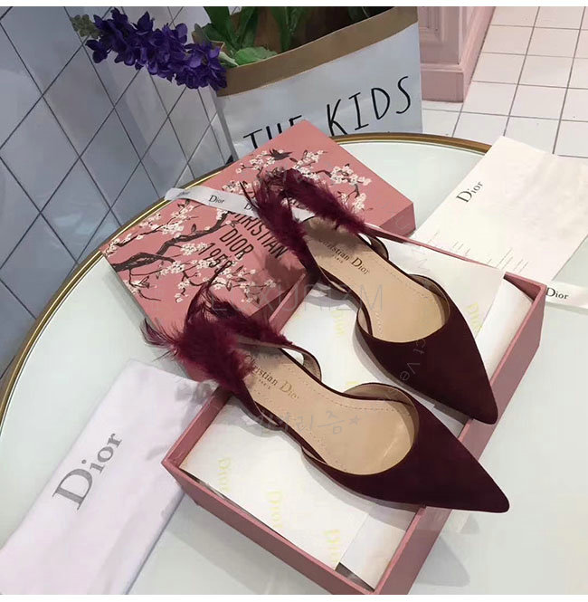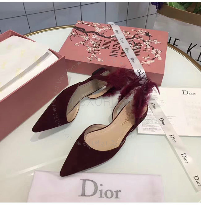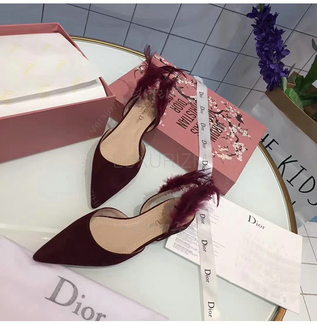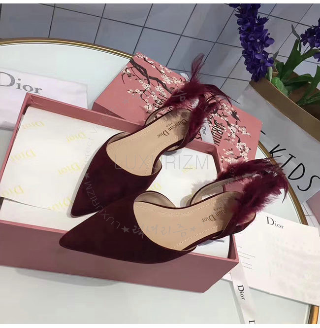 DIOR-KDB404 디올 버건디 깃털 스웨이드 가죽 슬링 백 발레리나 여성용