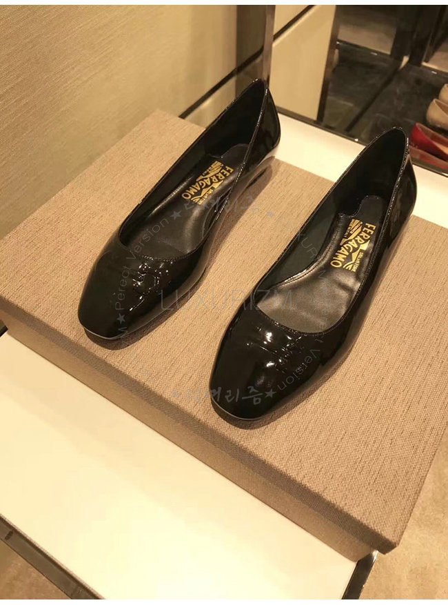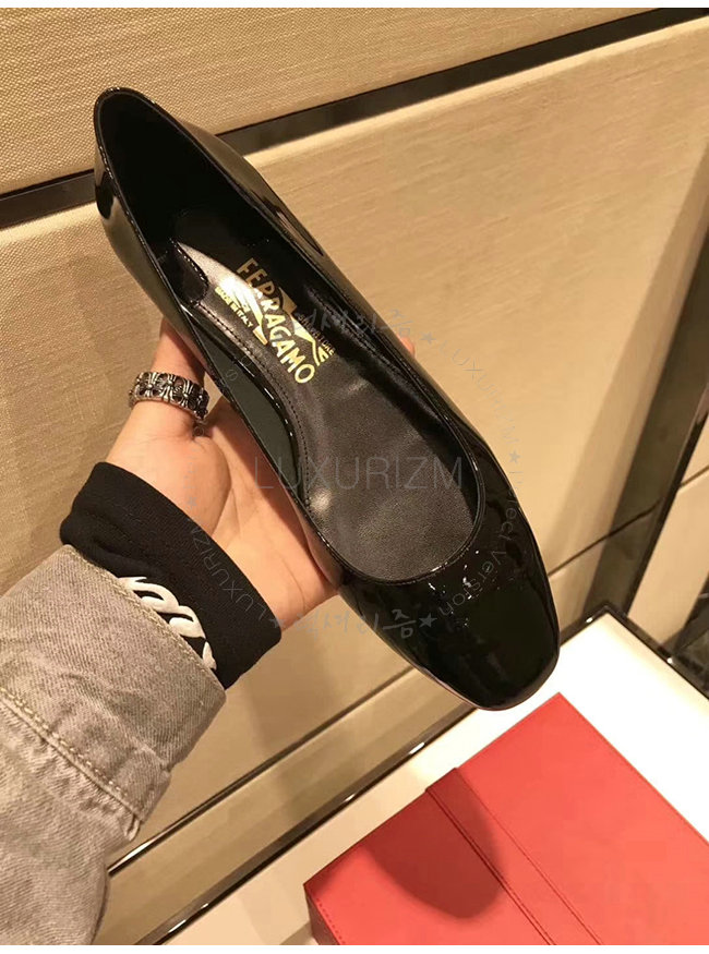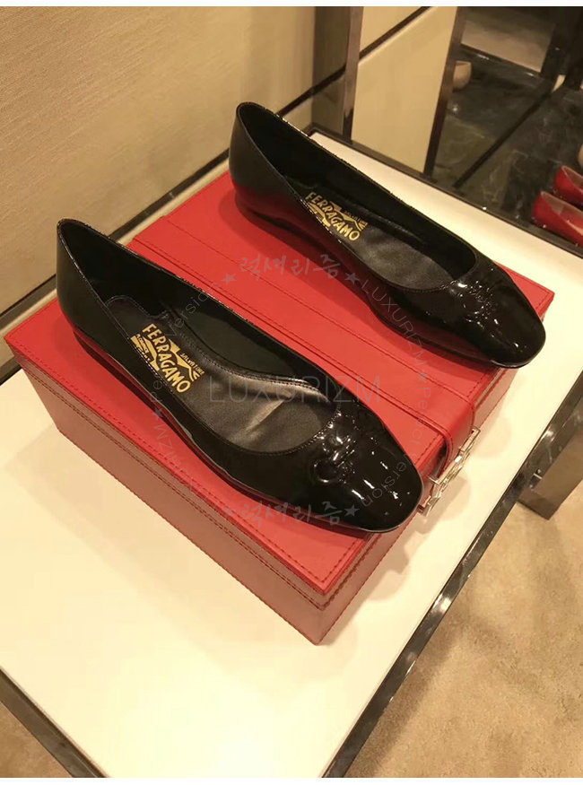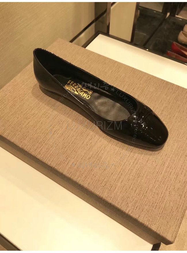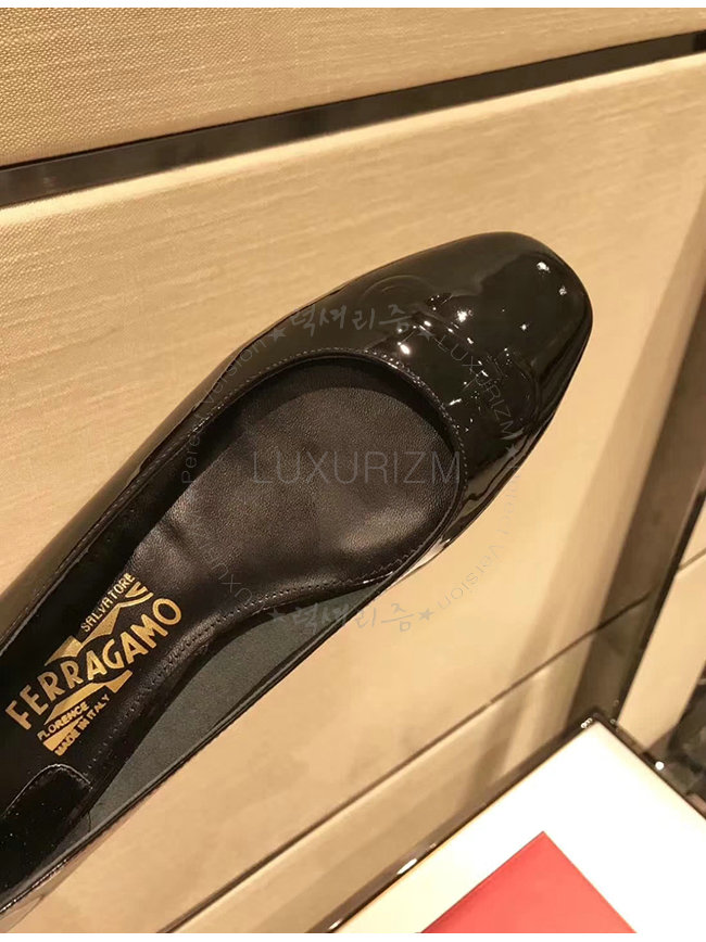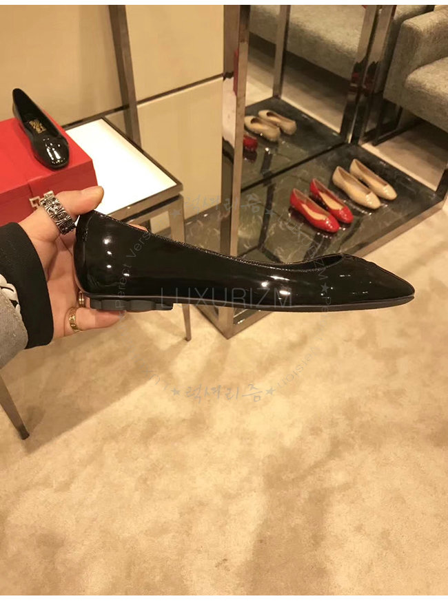 FERRAGAMO-01N023 페라가모 블랙 페이턴트 가죽 간치니 발레리나 여성용