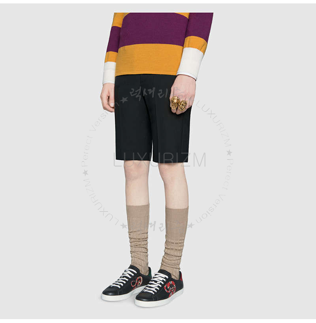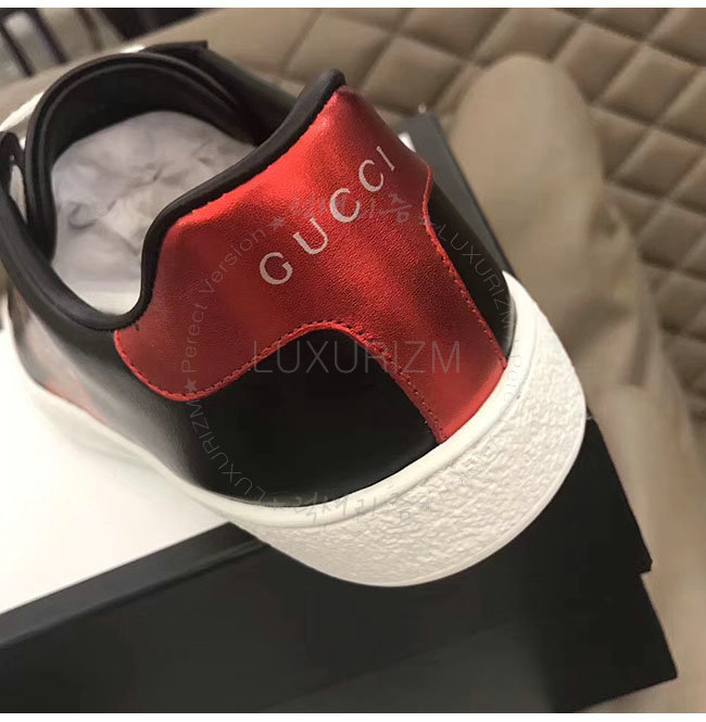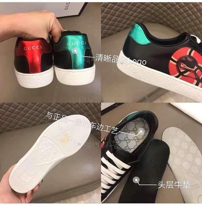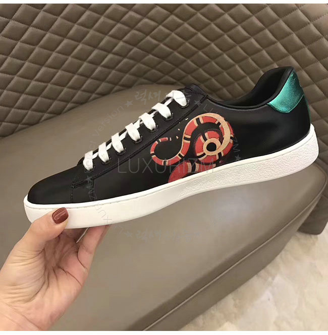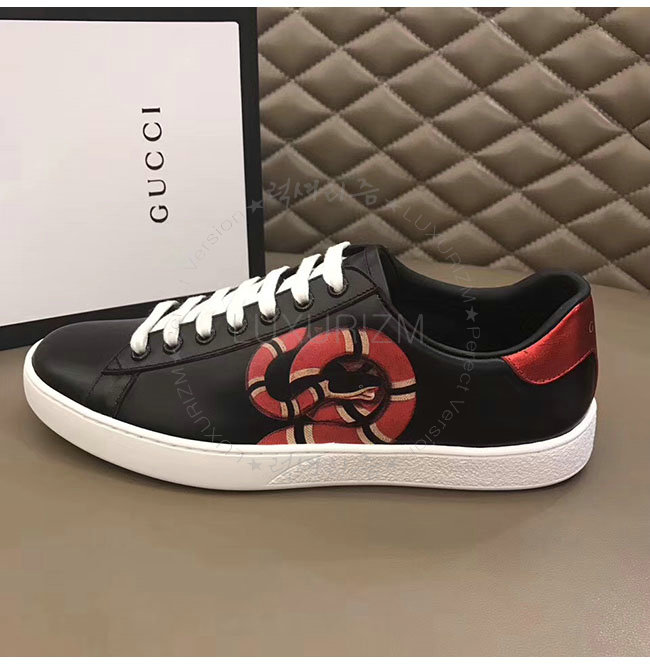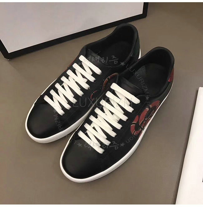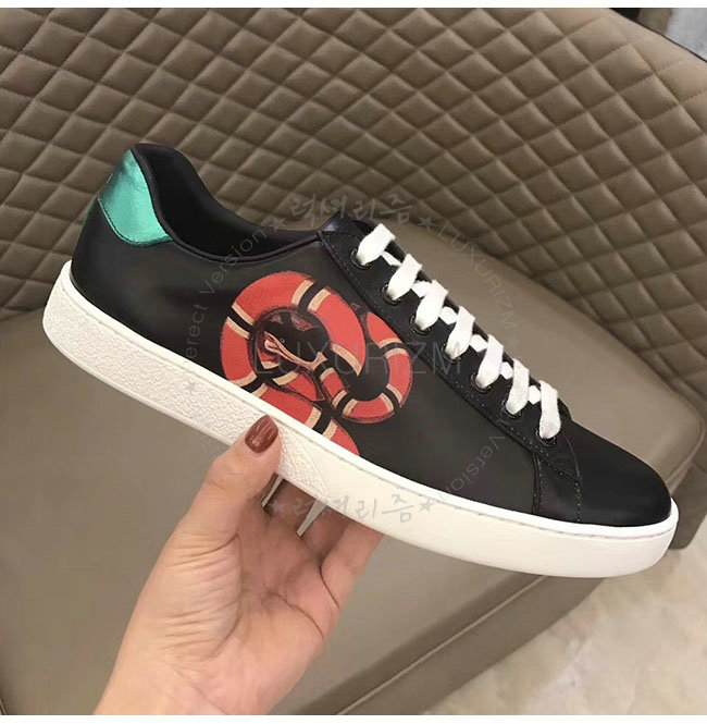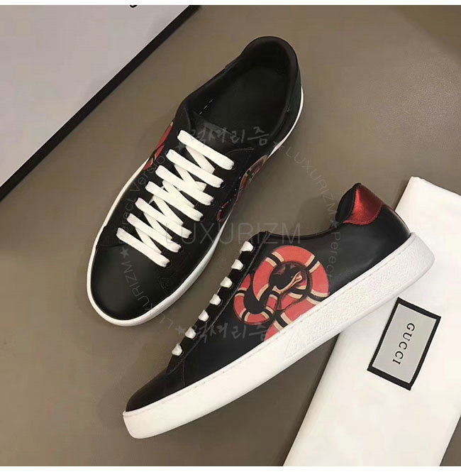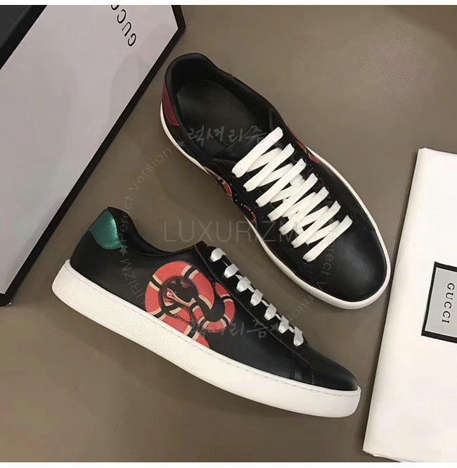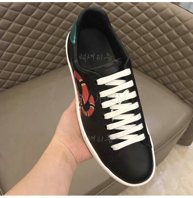 GUCCI-501309 1182 구찌 블랙 가죽 에이스 킹스네이크 프린트 스니커즈 남성용