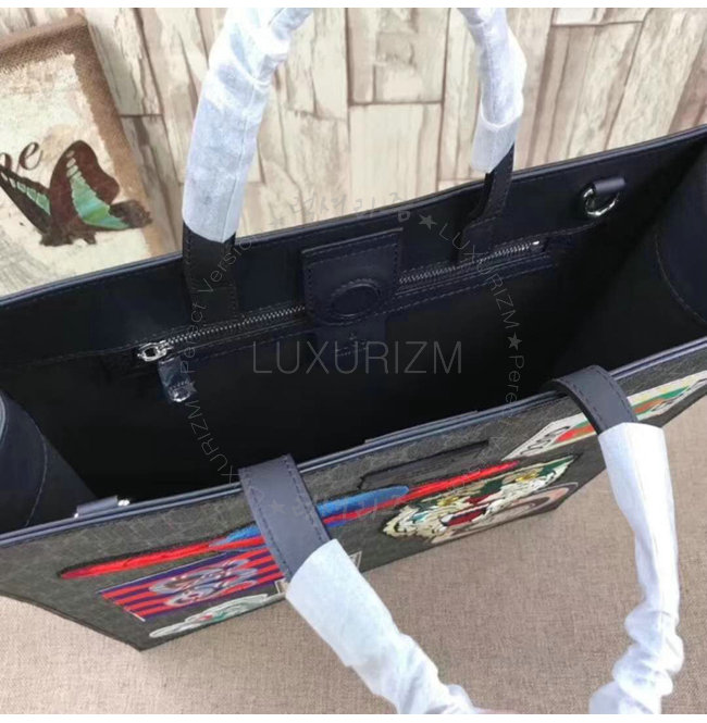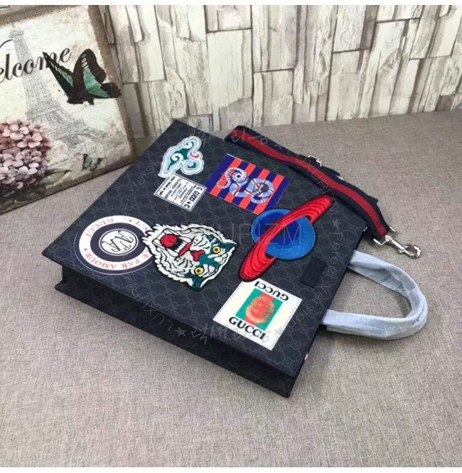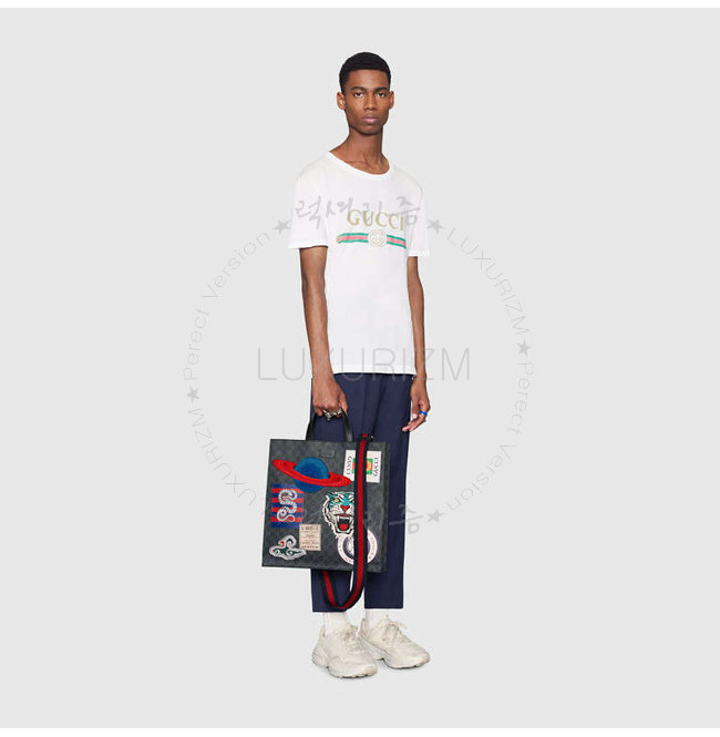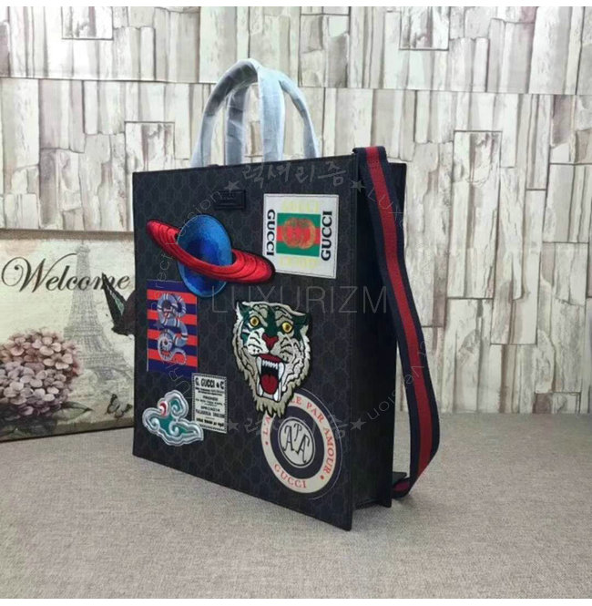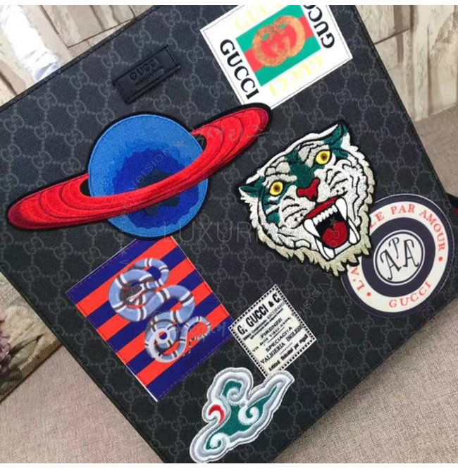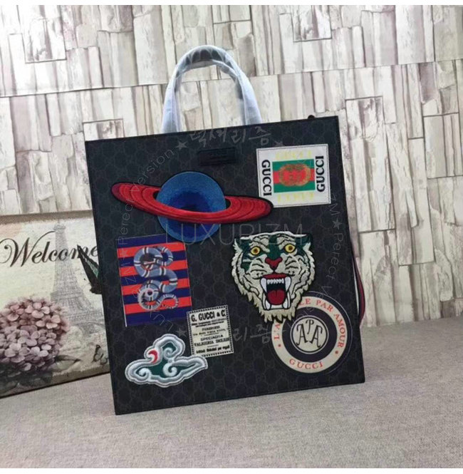 블랙 가죽 트리밍플래닛 타이거 헤드 및 구름 자수 아플리케 구찌 킹스네이크