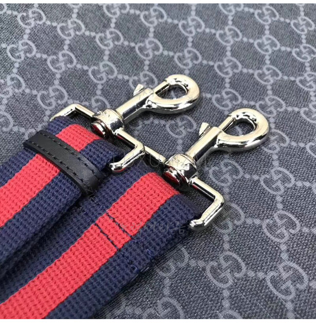 블랙 가죽 트리밍 블루/레드 Web 스트랩 내부 지퍼 포켓 더블 핸들 9.5cm 드롭 조절