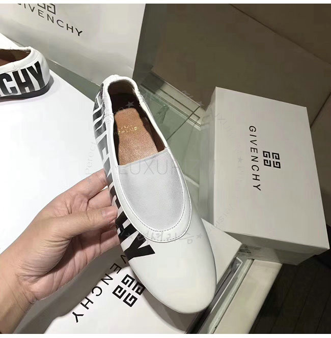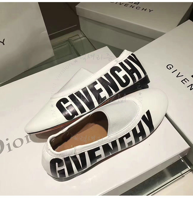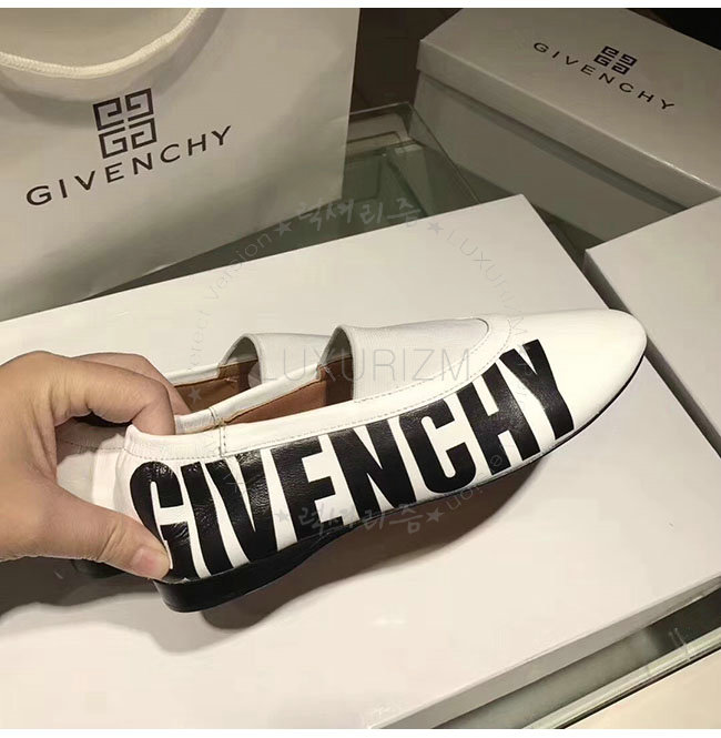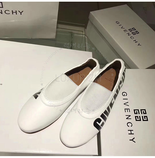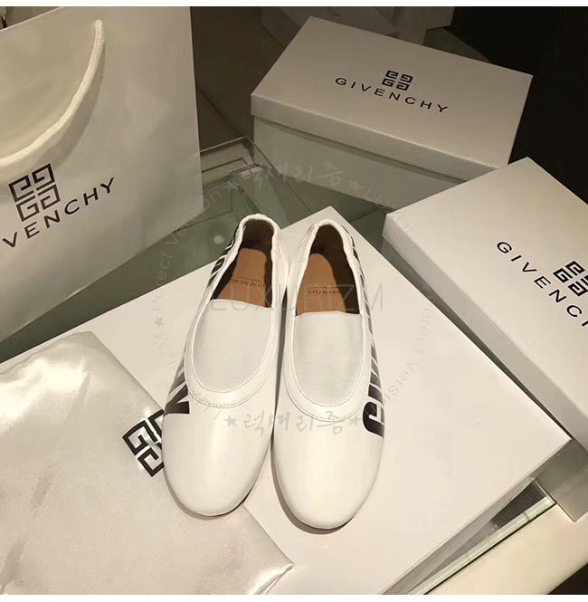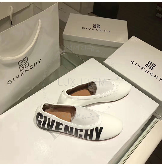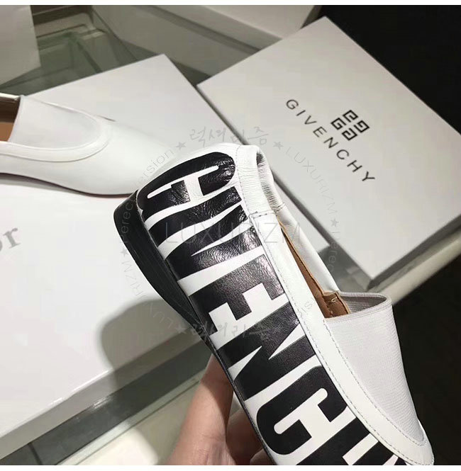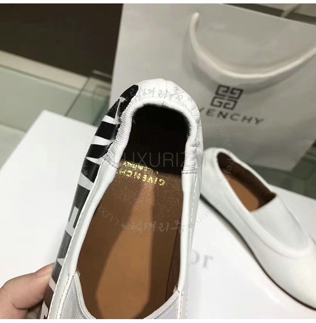 GIVENCHY-BE5007 지방시 화이트 가죽 로고 피린트 플랫 슈즈 여성용