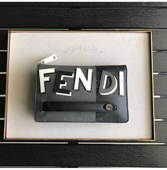 [스페셜오더]FENDI-7VA350 펜디 송아지 가죽 애니모티콘 모티프 디테일 블랙 클러치 백