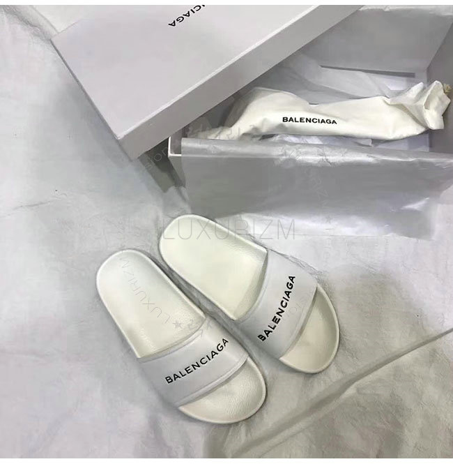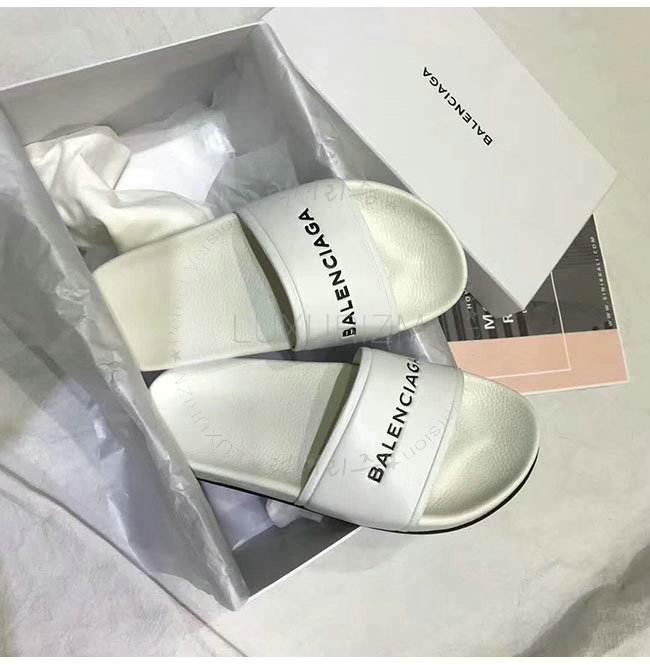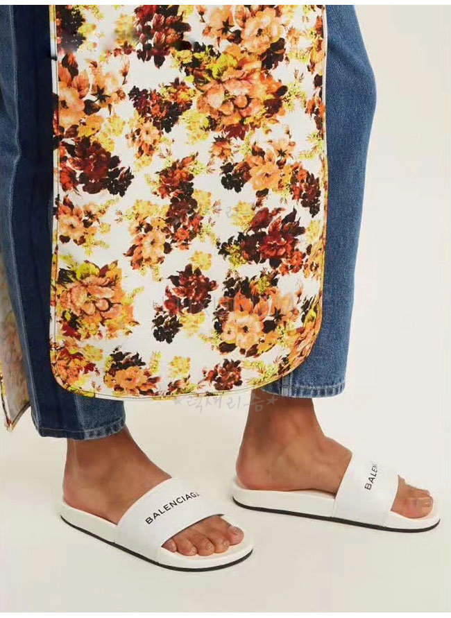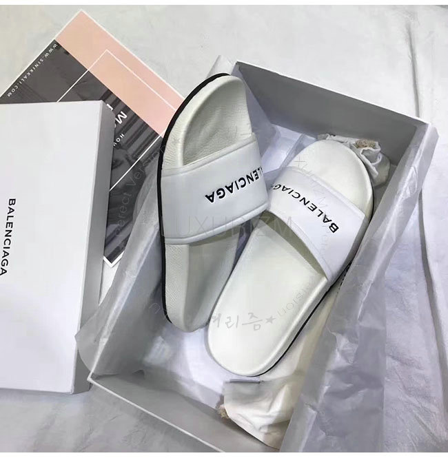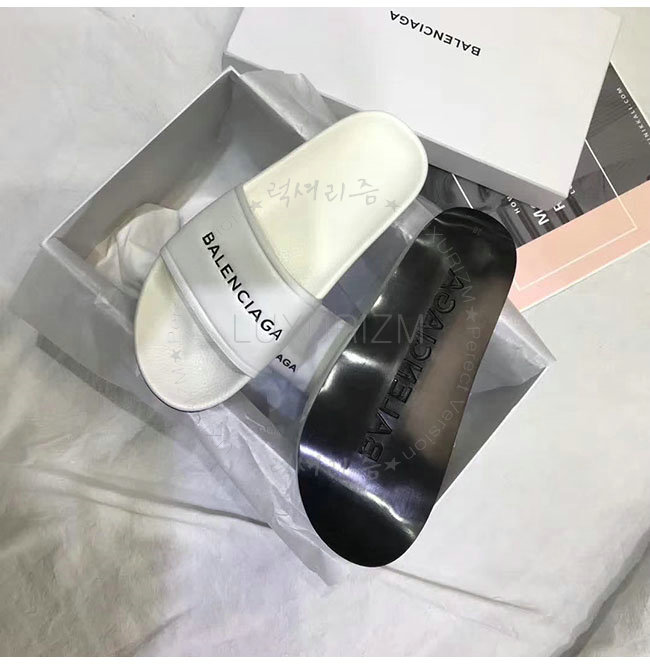 BALENCIAGA-506347 발렌시아가 화이트 카프스킨 파이신 플랫 샌들 남녀공용