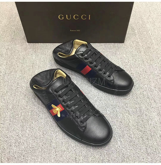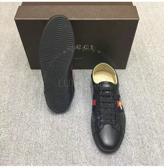 GUCCI-473762 1066 구찌 에이스 블랙 송아지가죽 로우탑 스니커즈 남성용