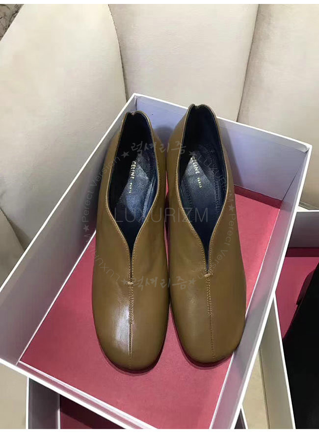 CELINE-325163 셀린느 커피 나파 램스킨 소프트 발레리나 웨이브 펌프스 여성용