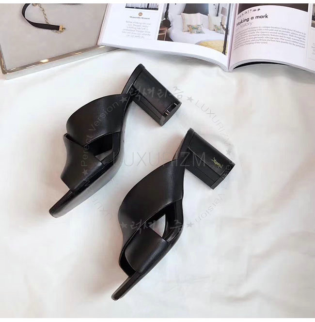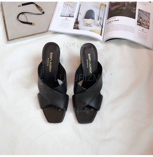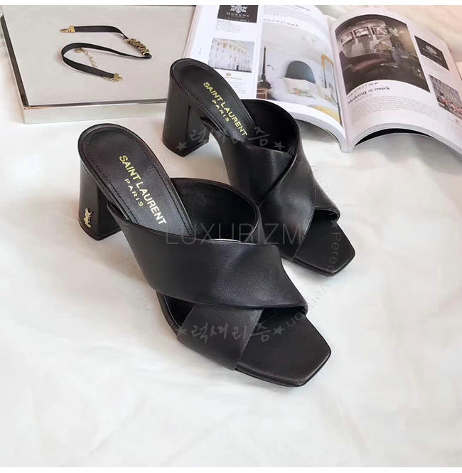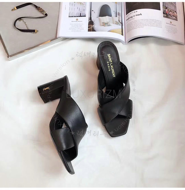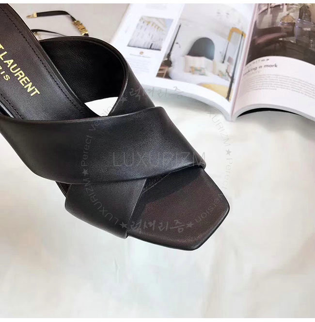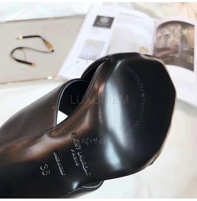 SAINT LAURENT-509357 생로랑 블랙 가죽 루루 라이드 샌들 펌프스 여성용