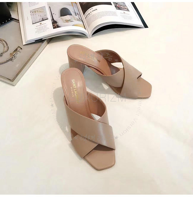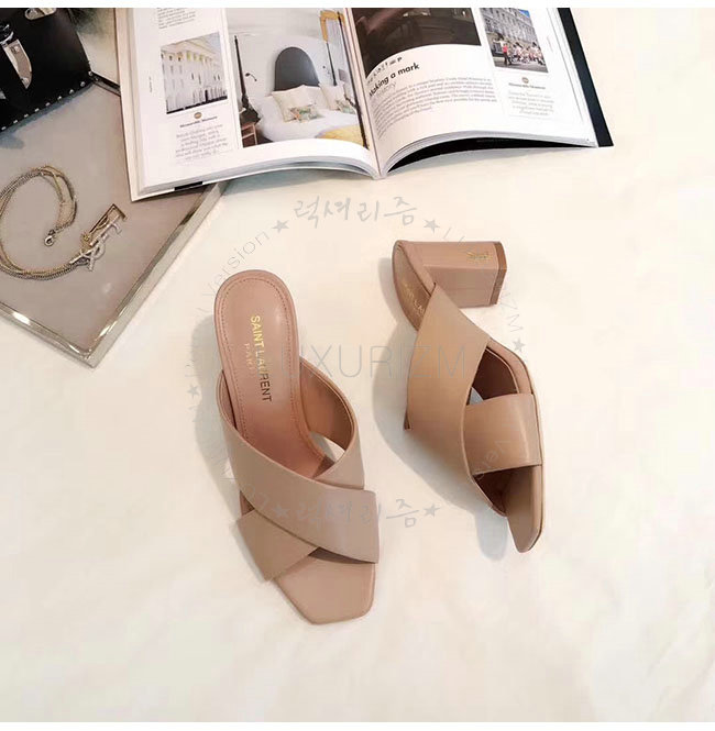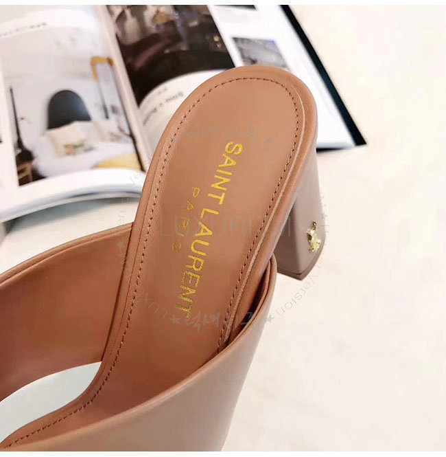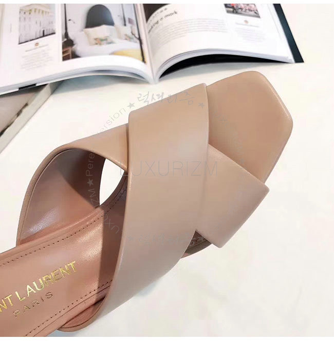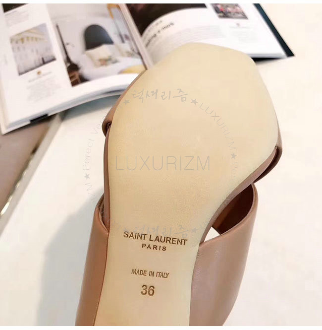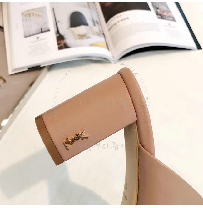 SAINT LAURENT-509357 생로랑 베이지 가죽 루루 라이드 샌들 펌프스 여성용
