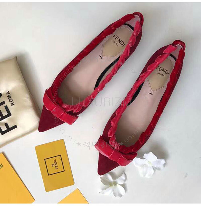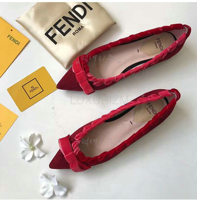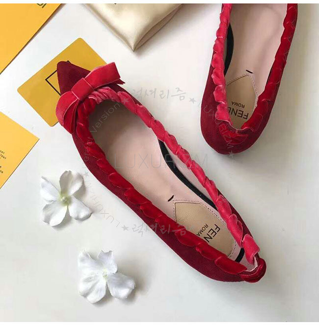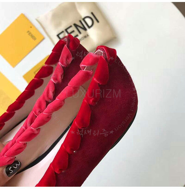 FENDI-8F6601 펜디 오베르진 레드 스웨이드 가죽 발레리나 여성용