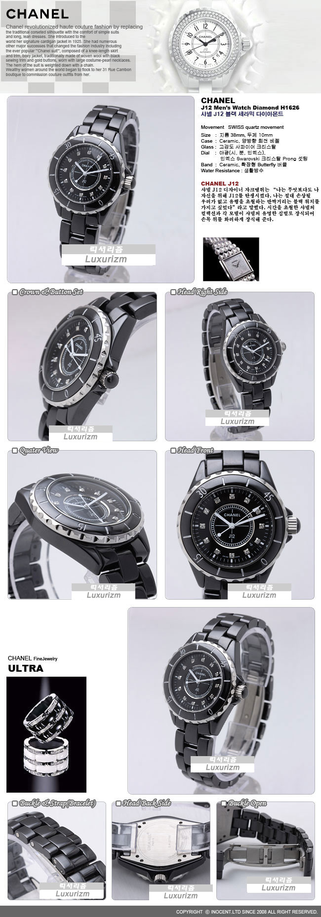 샤넬 J12 블랙 세라믹 다이아 인덱스
