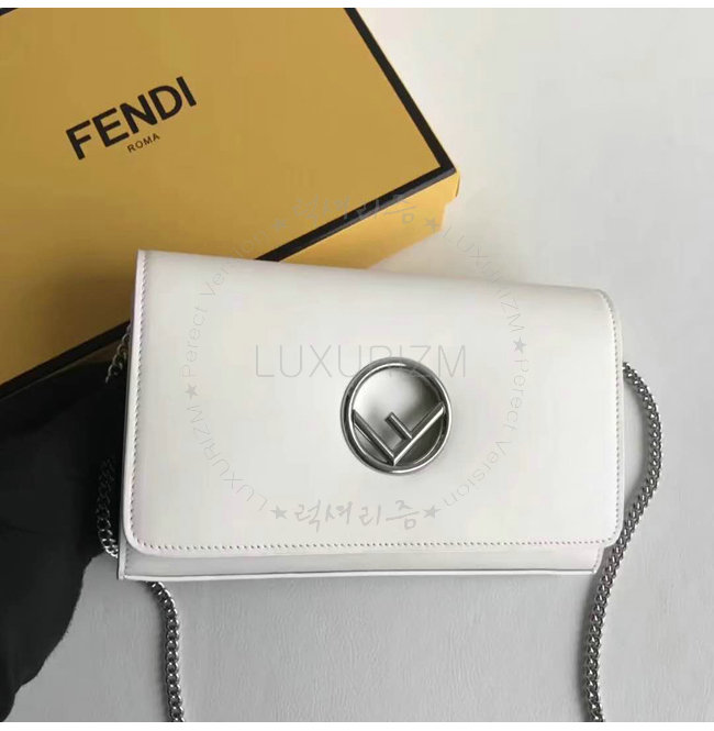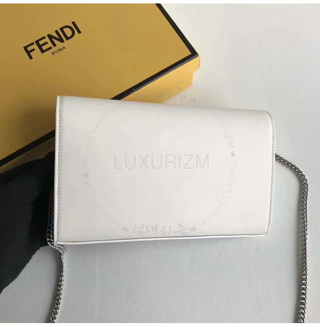 [스페셜오더]FENDI-8BS004 펜디 송아지 가죽 메탈 펜디 로고 장식 화이트 체인 지갑
