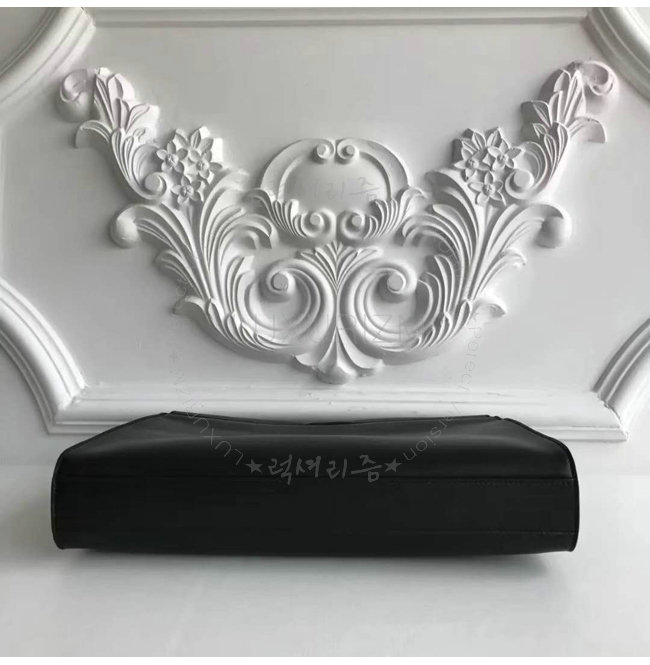 블랙 컬러의 부드러운 가죽 슬림 핸드백.톤온톤 디바이더로 분리되는 수납공간