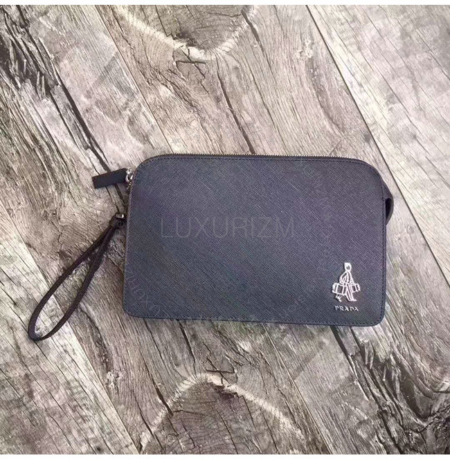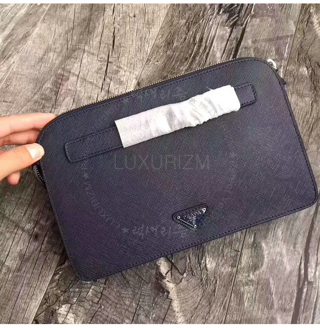 [스페셜오더]PRADA-2VF056 프라다 사피아노 가죽 포터 메탈 디테일 네이비 파우치