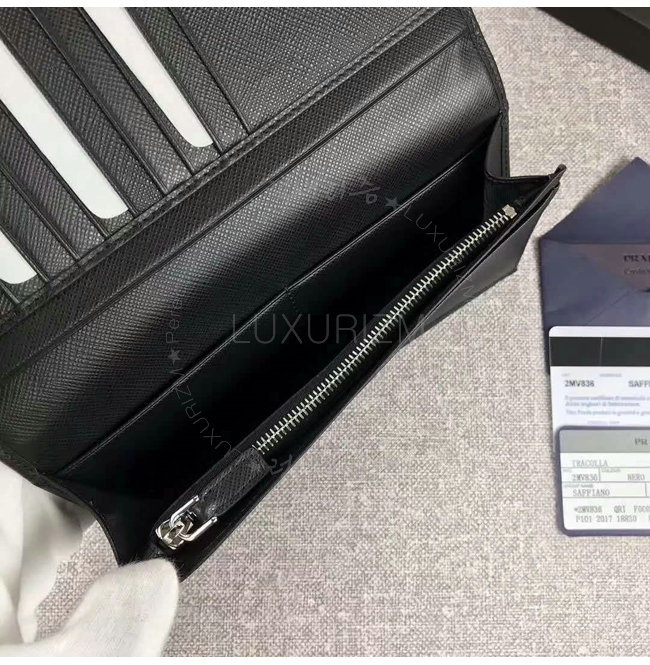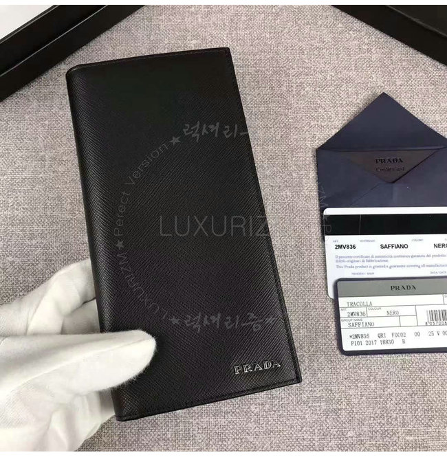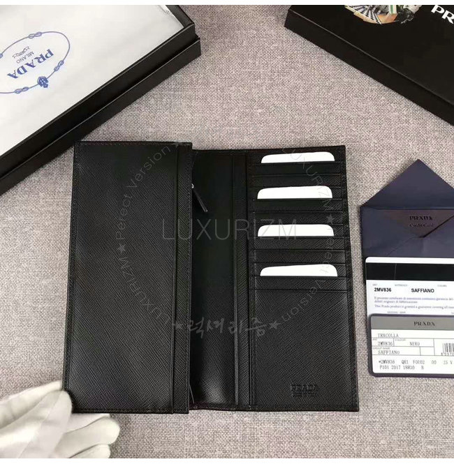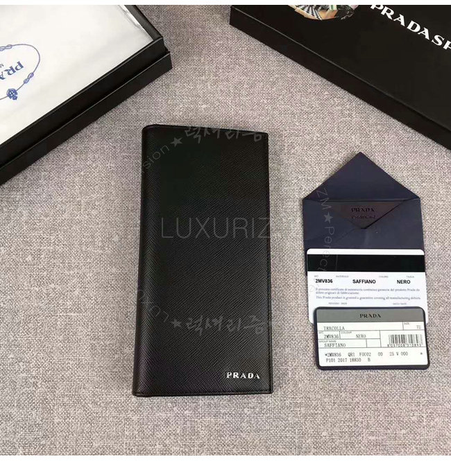 [스페셜오더]PRADA-2MV836 프라다 사피아노 가죽 메탈 로고 블랙 장지갑