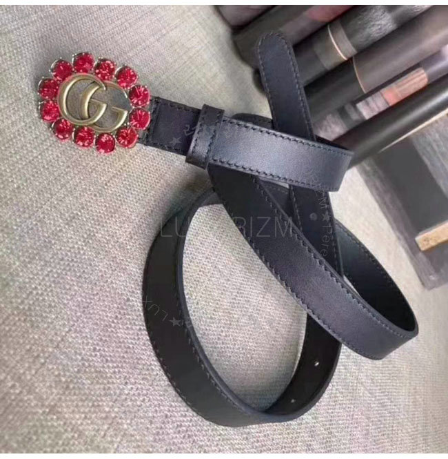 [스페셜오더]GUCCI-501175 8230 구찌 더블 G 크리스탈 디테일 가죽 벨트 2cm