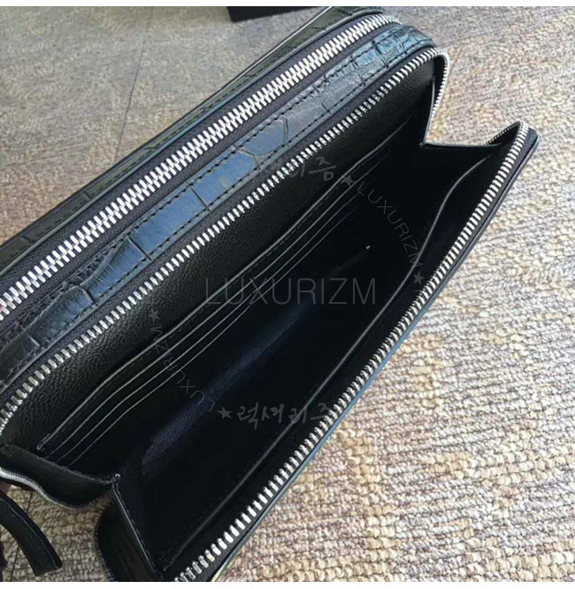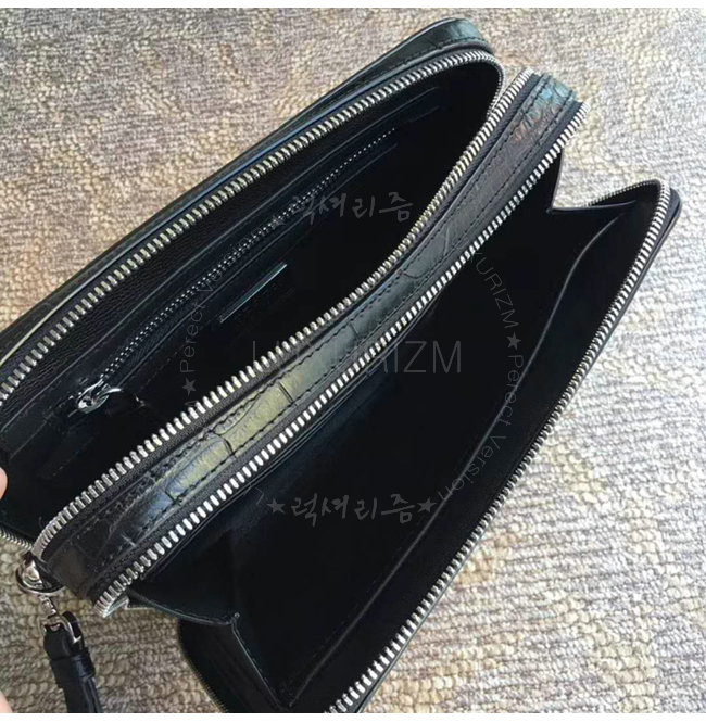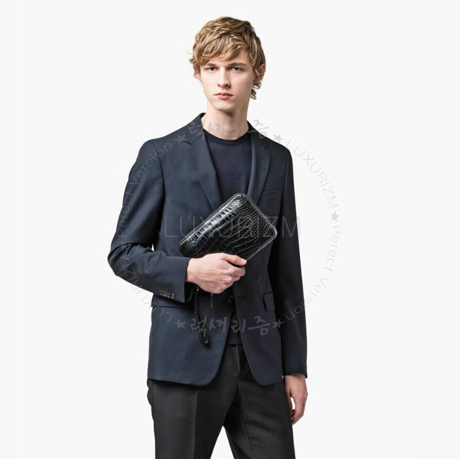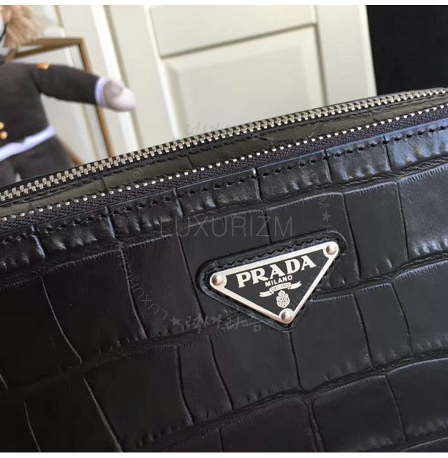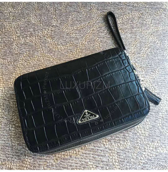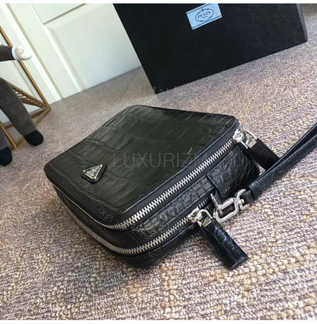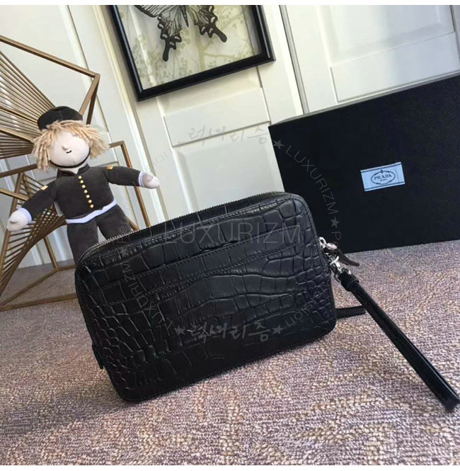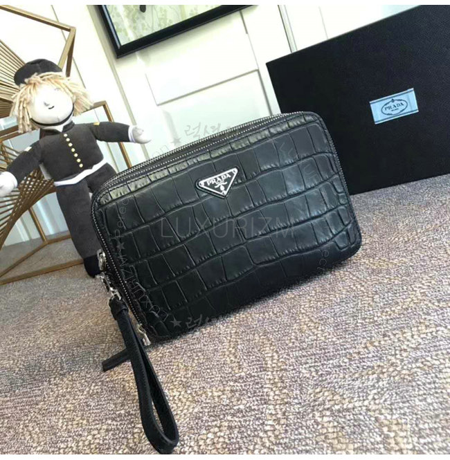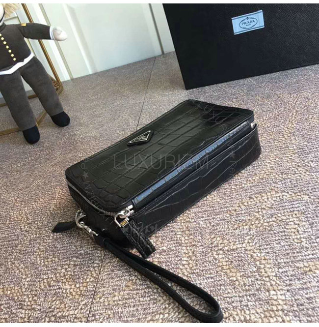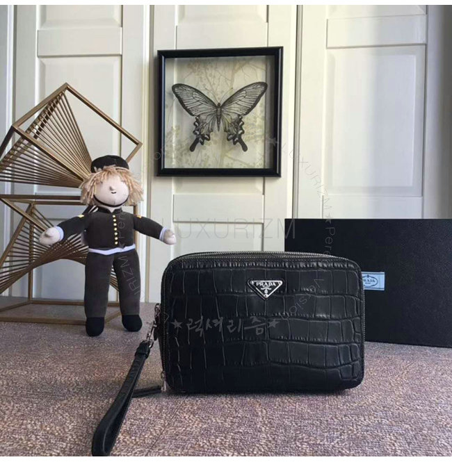 [스페셜오더]PRADA-2VF052 프라다 악어무늬 가죽 트라이앵클 로고 블랙 파우치