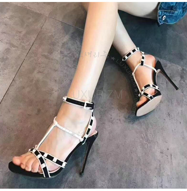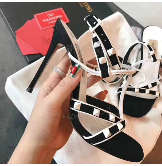 VALENTINO-PW2S0F14 발렌티노 스웨이드 가죽 블랙 프리 락스터드 샌들