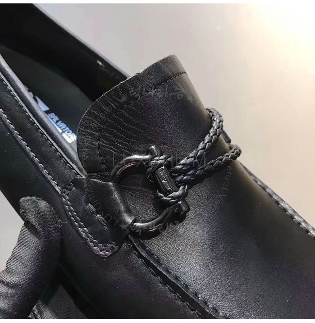 FERRAGAMO-02A220 페라가모 카프스킨 블랙 간치오 모카신