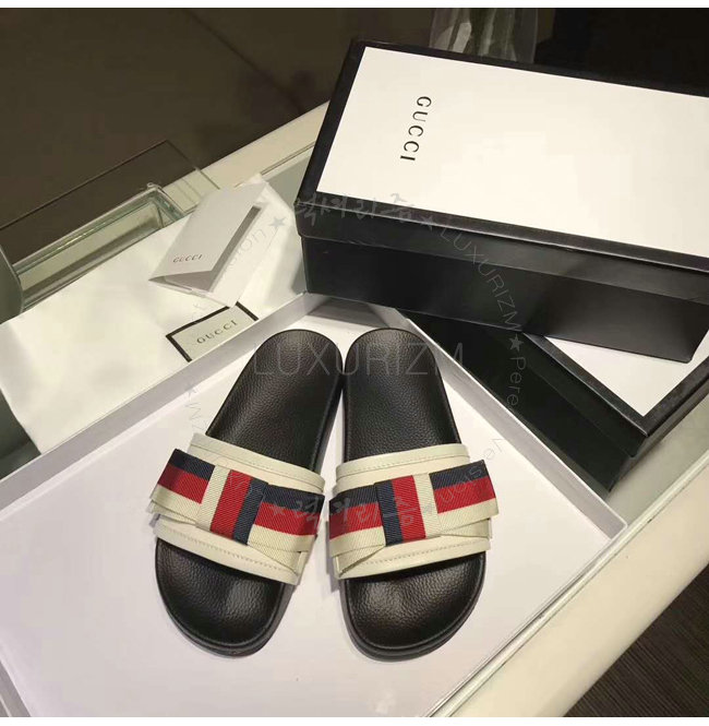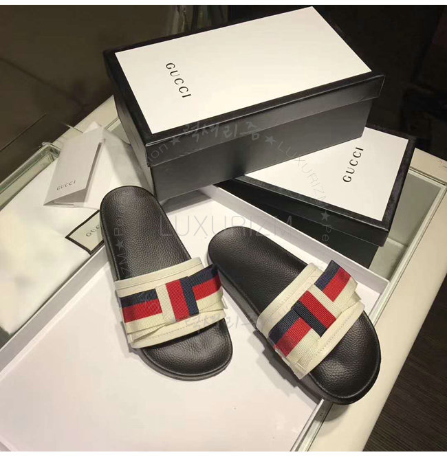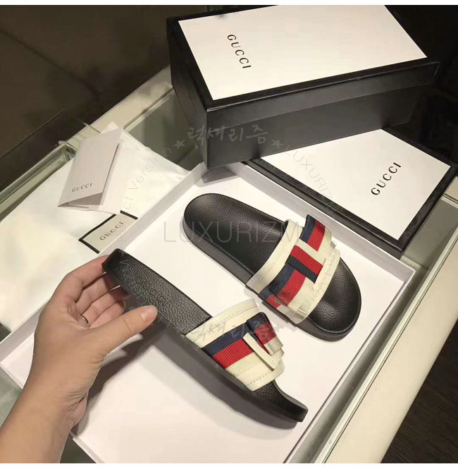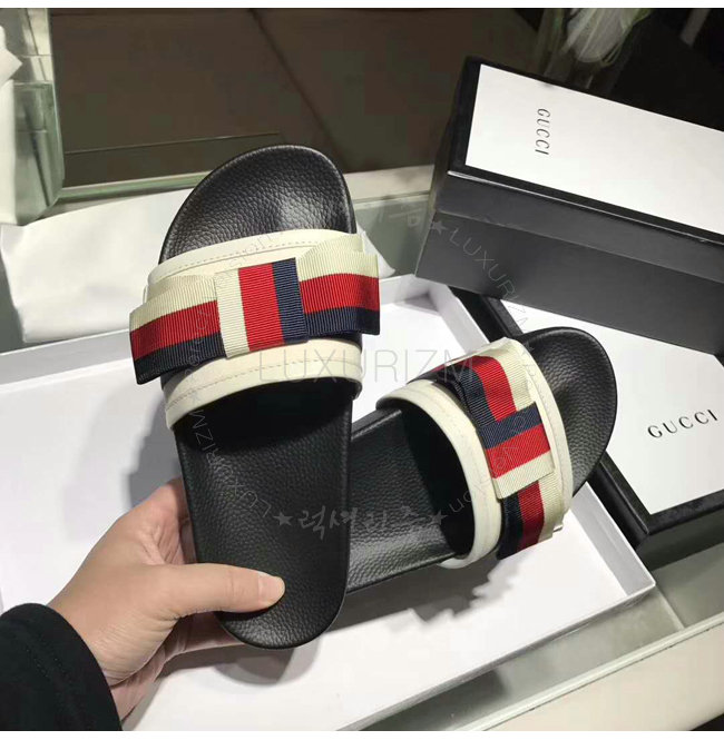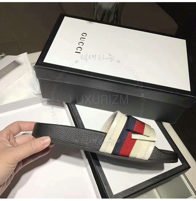 GUCCI-498316 9620 구찌 Web 보운 장식 화이트 슬라이드