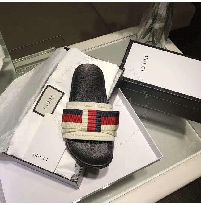 GUCCI-498316 1146 구찌 Web 보운 장식 블랙 슬라이드
