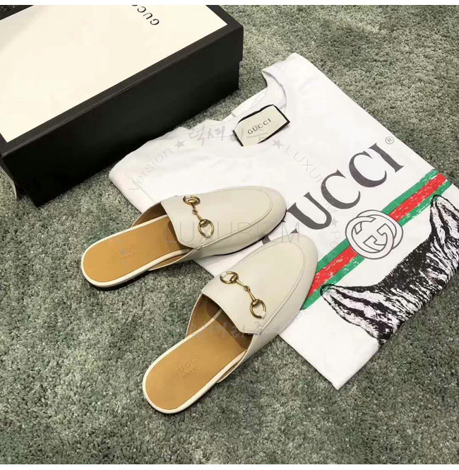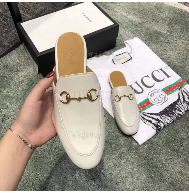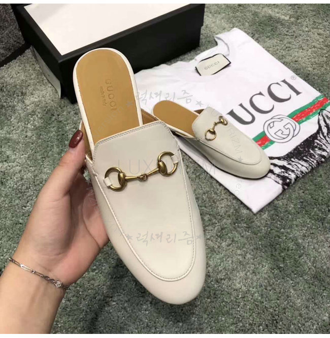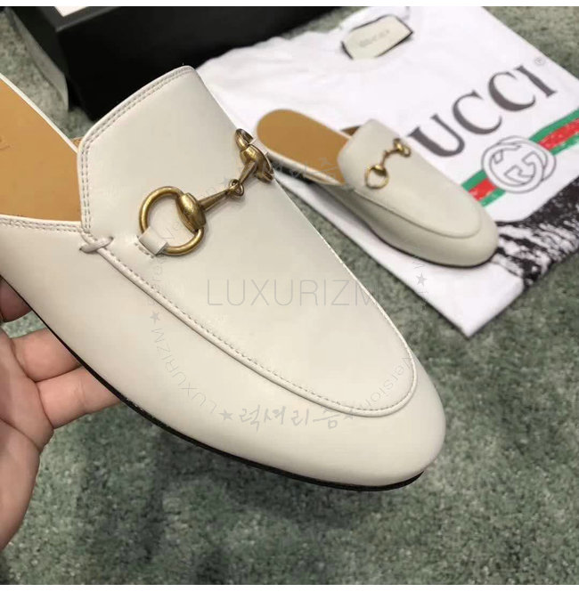 GUCCI-423513 9022 구찌 Princetown 화이트 가죽 슬리퍼