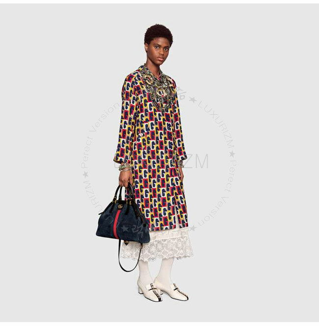[스페셜오더]GUCCI-516459 8774 구찌 RE(BELLE) 블루 스웨이드 가죽 미디엄 탑 핸들 토트백