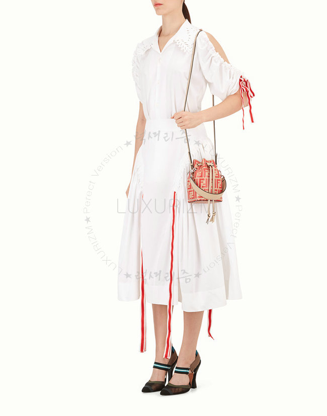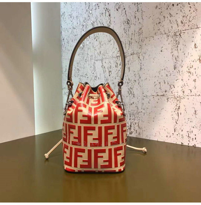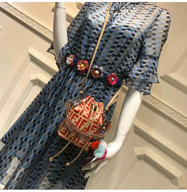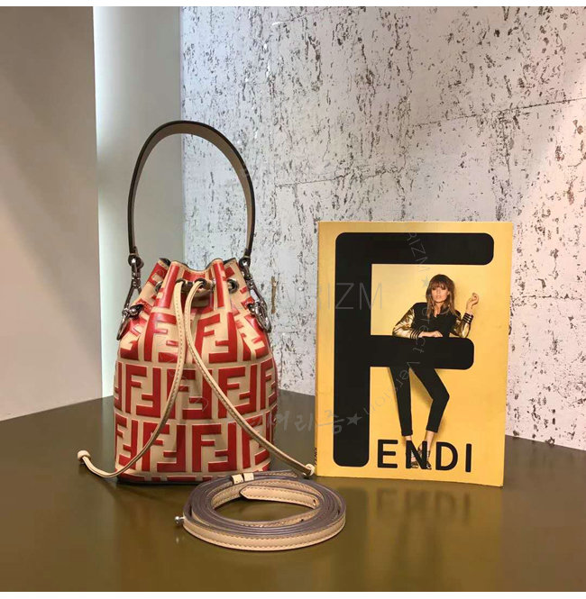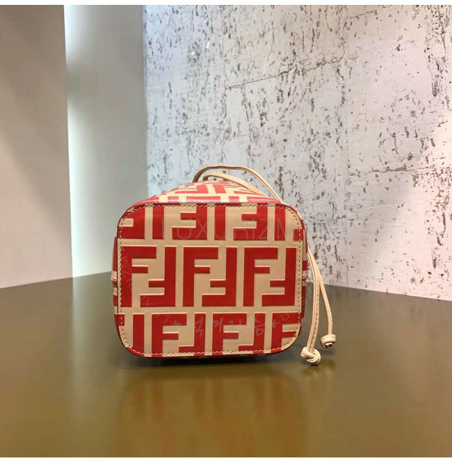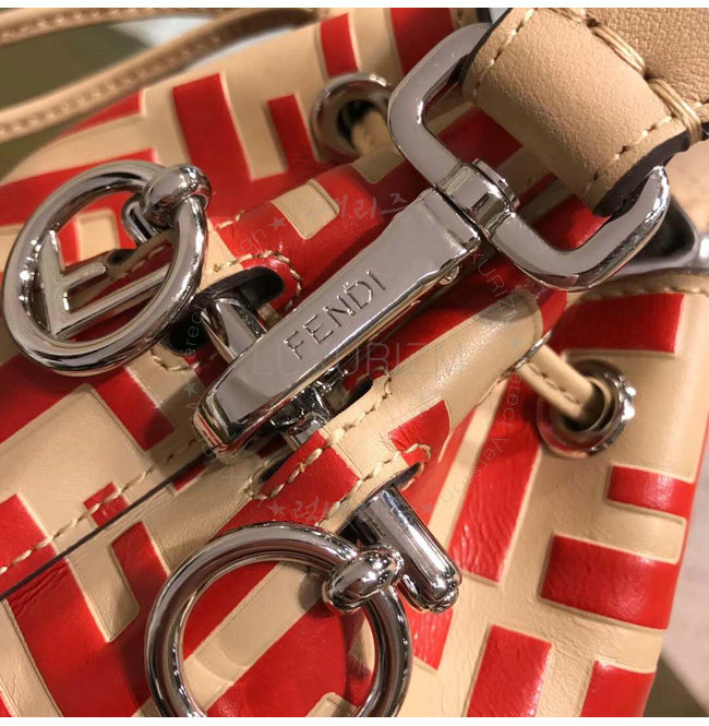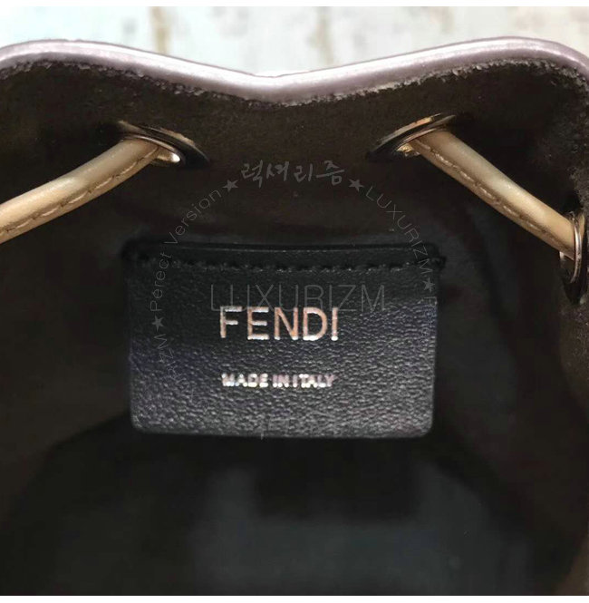 스몰 몽 트레죠르 버킷 백. 드로우스트링 잠금장치와 F is Fendi 로고 형태의 메탈 장식. 롱 길이