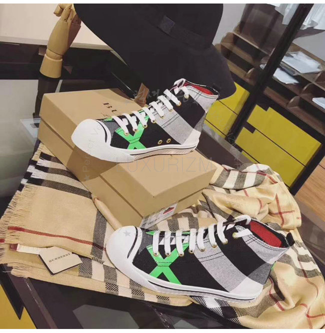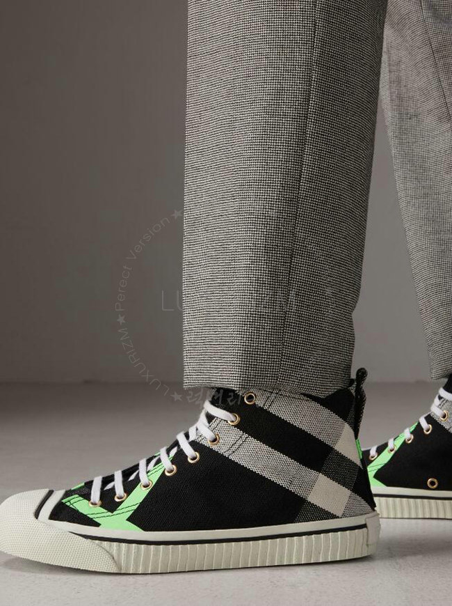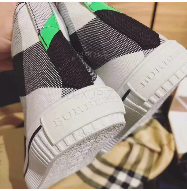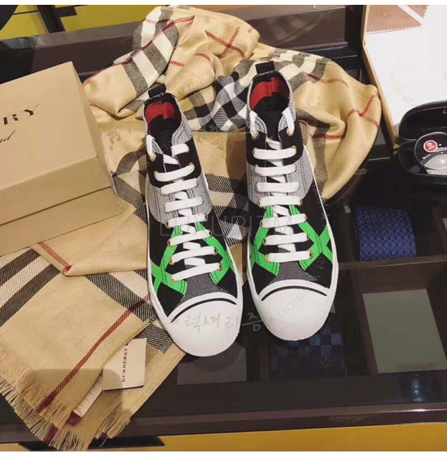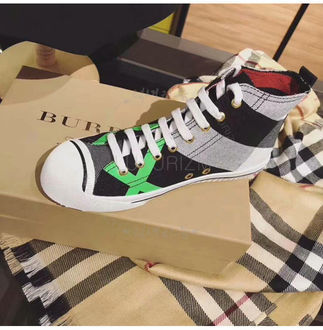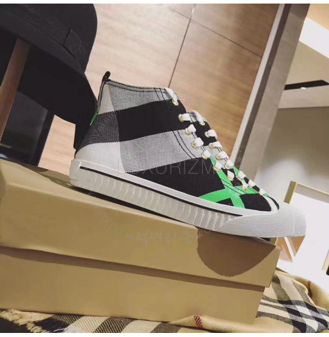 BURBERRY-40662611 버버리 캔버스 체크 가죽 하이톱 스니커즈