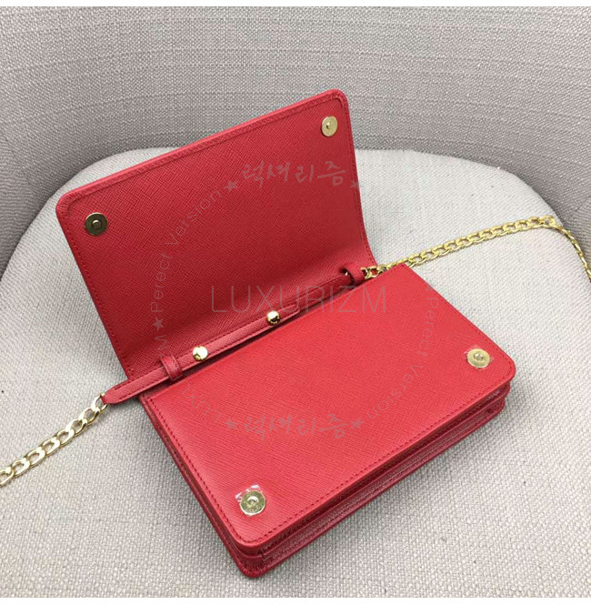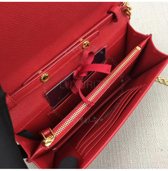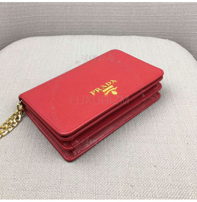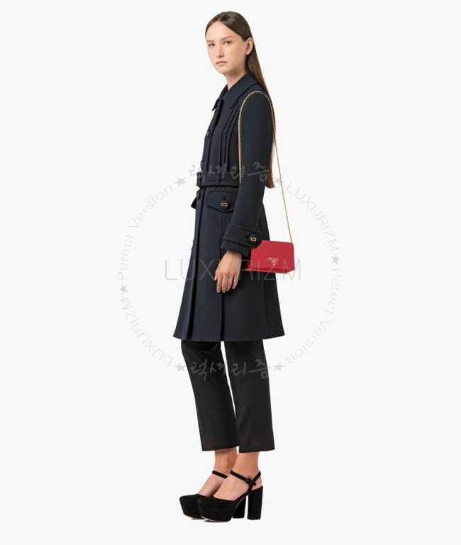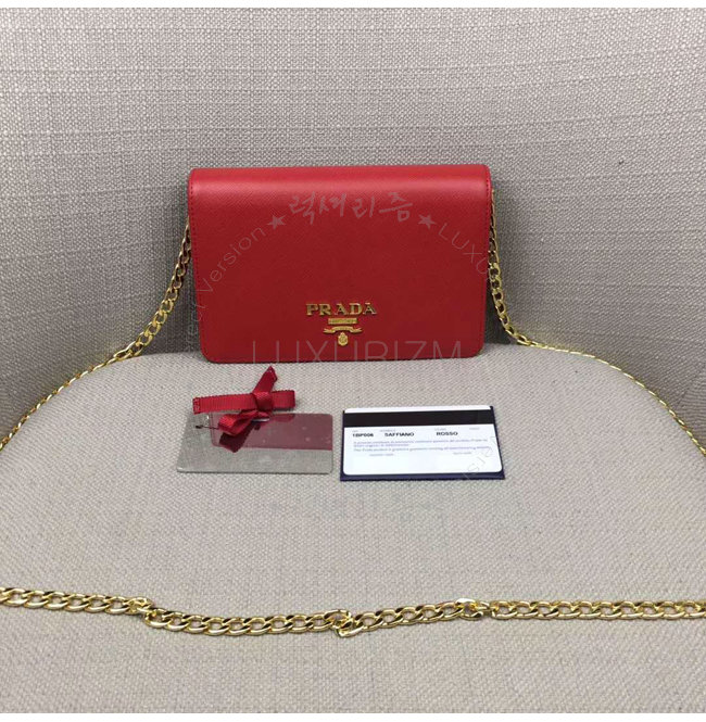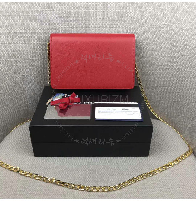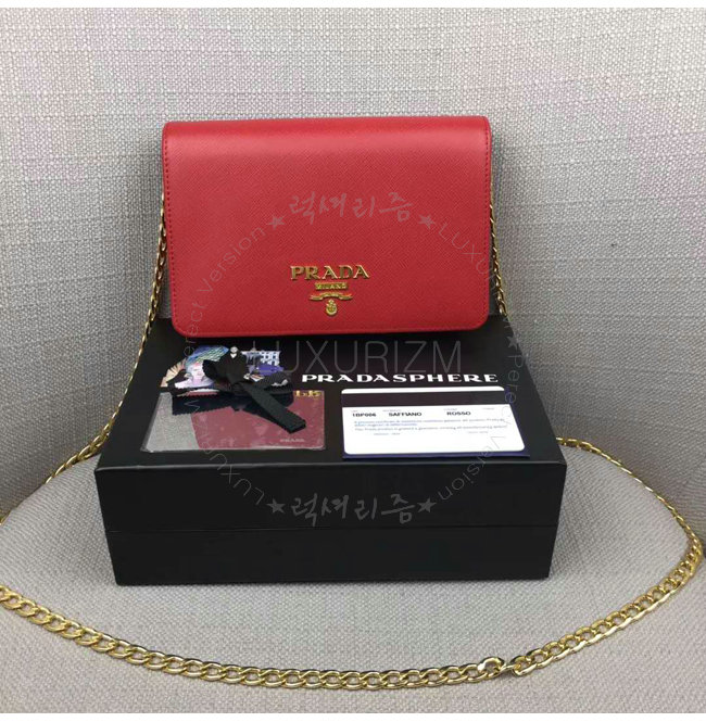 [스페셜오더]PRADA-1BP006 프라다 사피아노 가죽 네이비 가죽 메탈 레터링 로고 레드 숄더 백