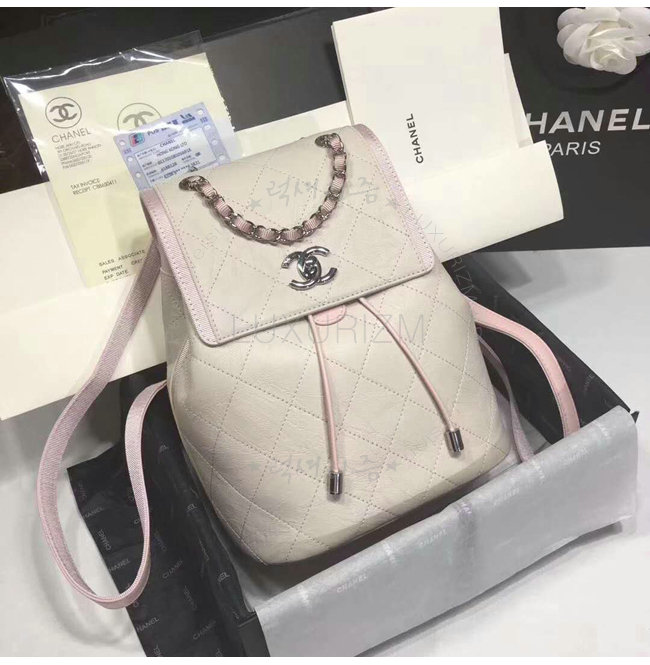 [스페셜오더]CHANEL-A57083 샤넬 그레인드 크럼플드 카프스킨 실버 메탈 아이보리 백팩