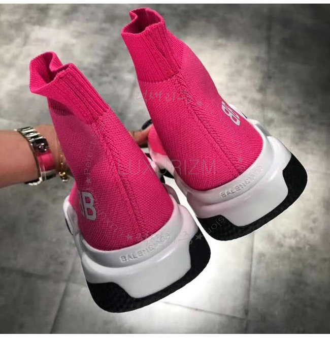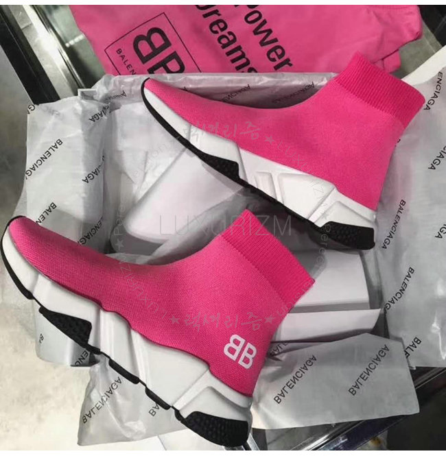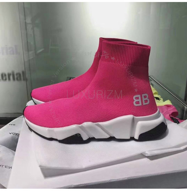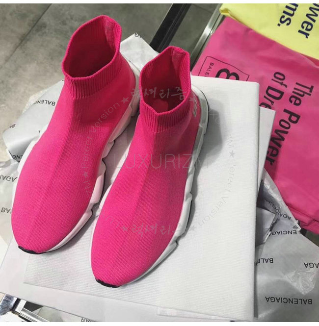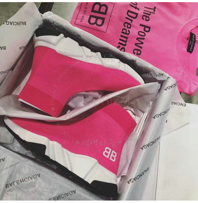 BALENCIAGA-518767 발렌시아가 BB 로고 네온 핑크 니트 스피드 트레이너